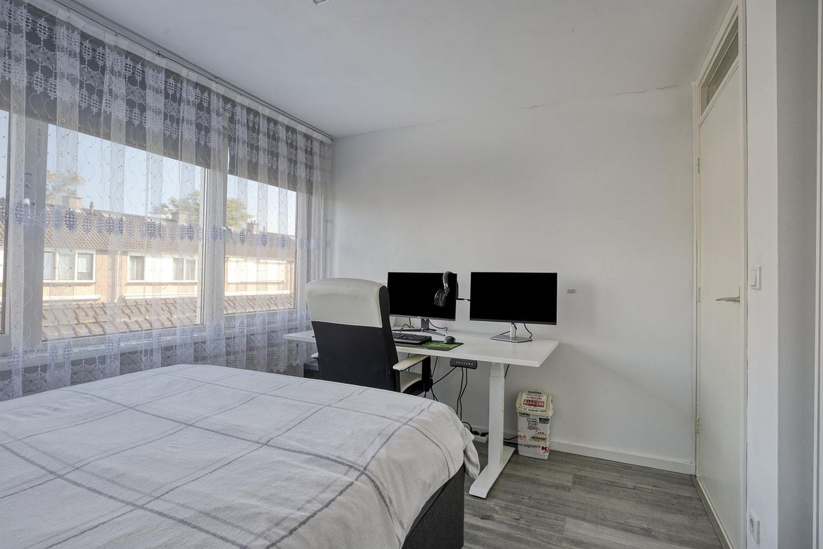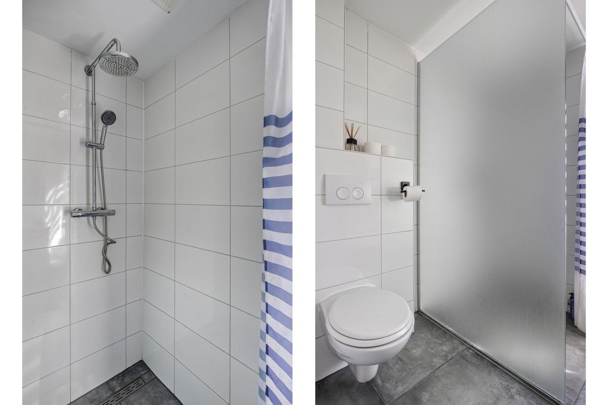 Op de eerste verdieping bevinden zich twee ruime slaapkamers en een derde middelgrote kamer. De badkamer (2021) is modern en praktisch ingericht met een inloopdouche, toilet en badmeubel. Alles is strak afgewerkt en goed onderhouden.