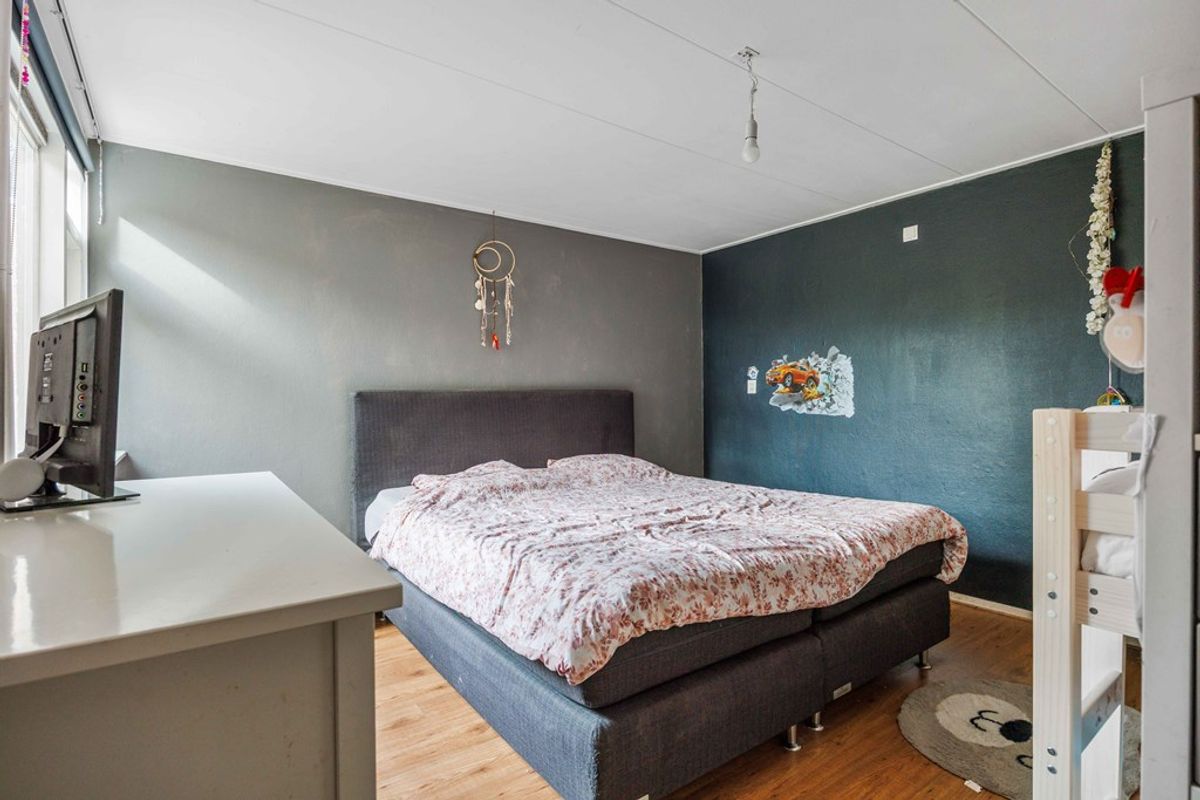 Vanuit de bijkeuken is de ruime slaapkamer op de begane grond bereikbaar. Deze slaapkamer heeft directe toegang tot de badkamer, welke is voorzien van een douche, toilet en wastafel. De indeling van deze begane grond maakt het mogelijk om volledig levensloopbestendig te wonen, zonder dat u gebruik hoeft te maken van de trap naar de eerste verdieping.