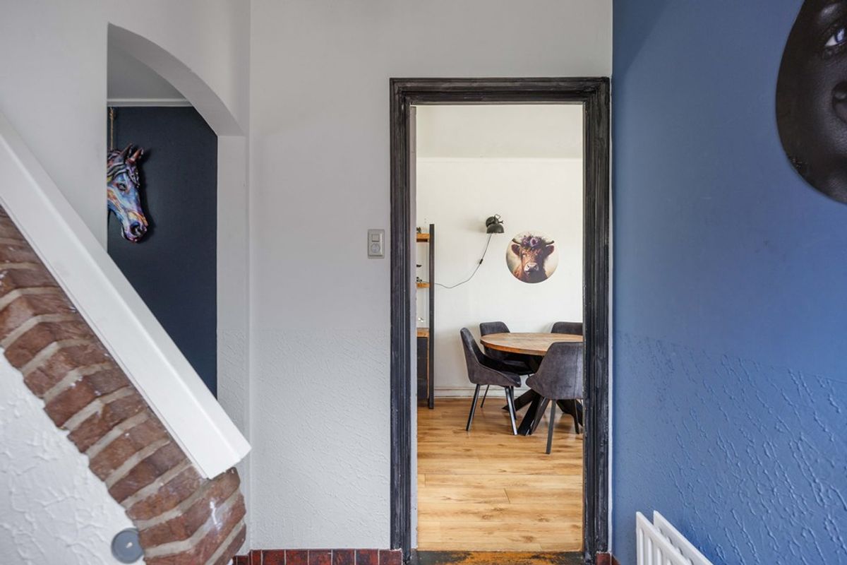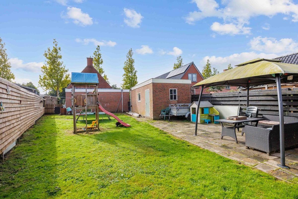 De diepe achtertuin is een pluspunt. Het is een fijne, groene ruimte met veel privacy, waar kinderen kunnen spelen, of waar u kunt genieten van de rust en het buitenzijn. De losstaande stenen garage biedt voldoende ruimte voor een auto, fietsen of opslag van gereedschap of andere spullen.