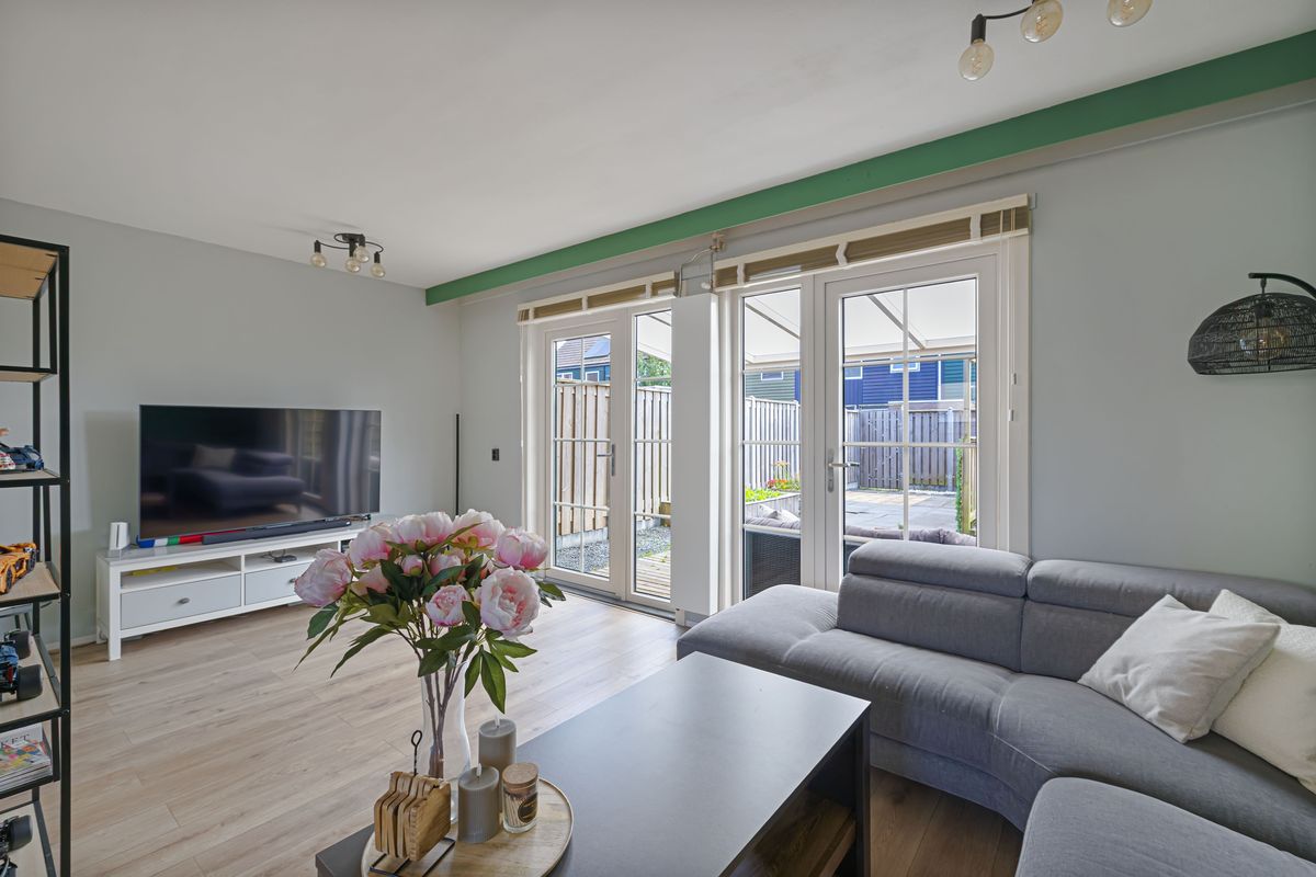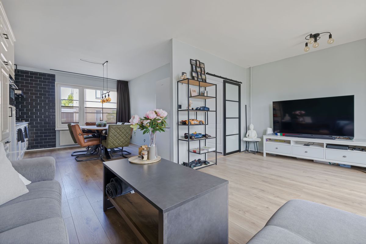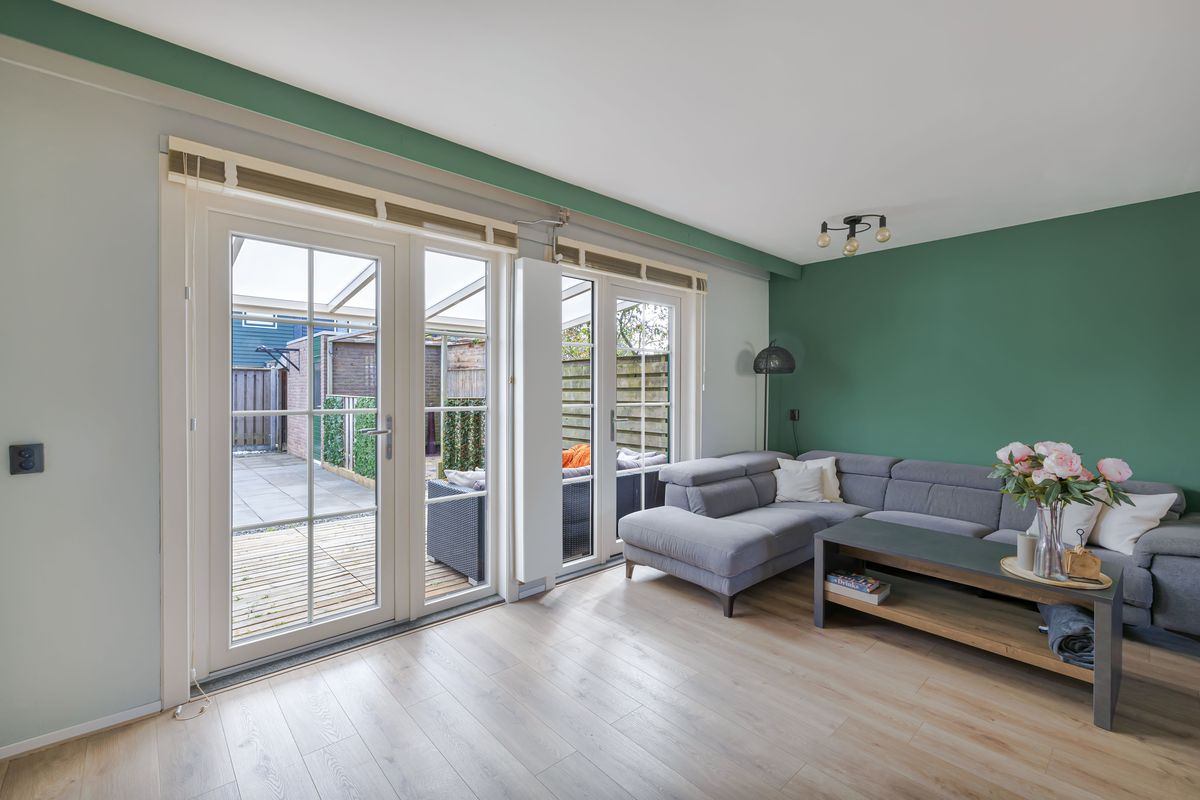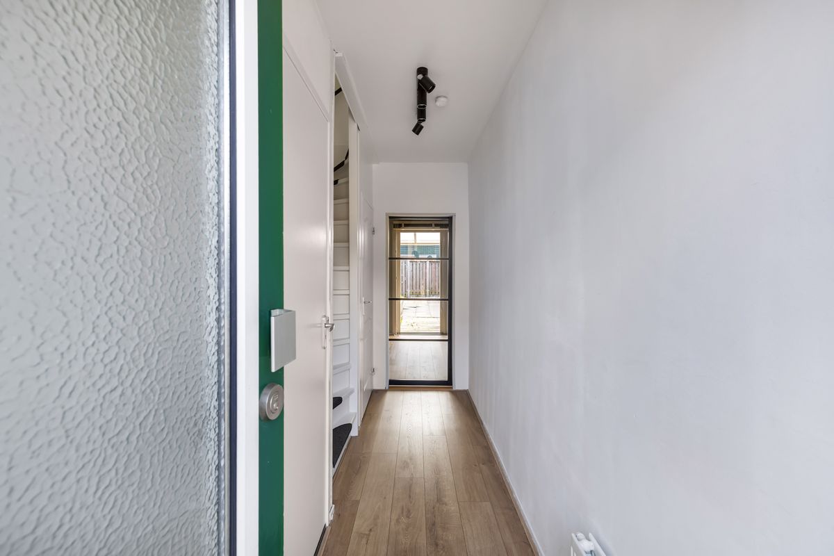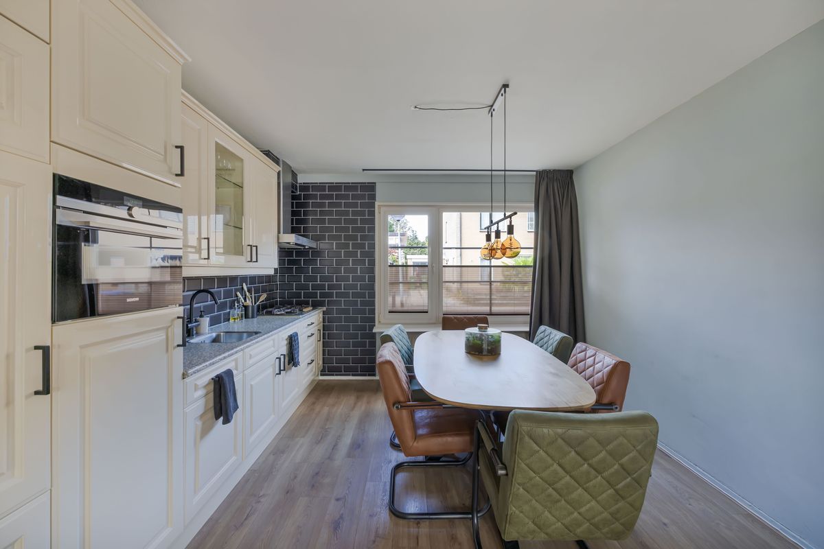 Je betreedt de woning via de hal met toegang tot het gerenoveerde toilet met fonteintje en de trapopgang naar de eerste verdieping. De woonkamer is sfeervol, ruim en voorzien van een fraaie laminaatvloer, strakke wandafwerking en twee toegangsdeuren naar de overkapping en de zonnige achtertuin. Aan de voorzijde bevindt zich de ruime keuken (2017) met voldoende werk en opberg ruimte. Hier tref je alle moderne inbouwapparatuur zoals een gaskookplaat, , combi magnetron, afzuigkap, vriezer en vaatwasser.