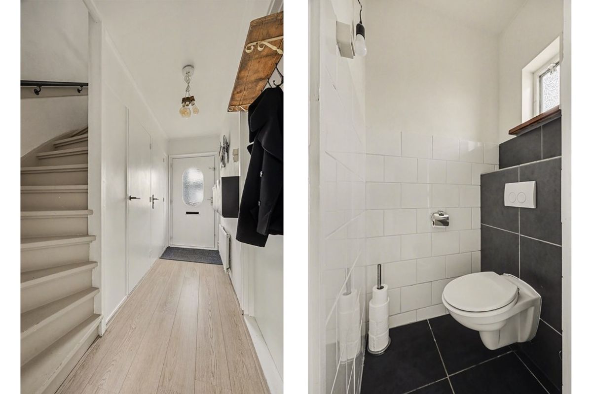 Je stapt binnen in de hal met toegang tot het toilet en de ruime droge kelder, de trap naar de eerste verdieping en de keuken. Vanuit de keuken kun je naar de woonkamer. Deze is knus maar sfeervol. De keuken en toilet zijn netjes maar eenvoudig.