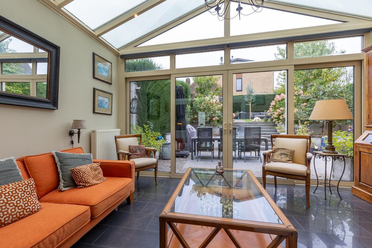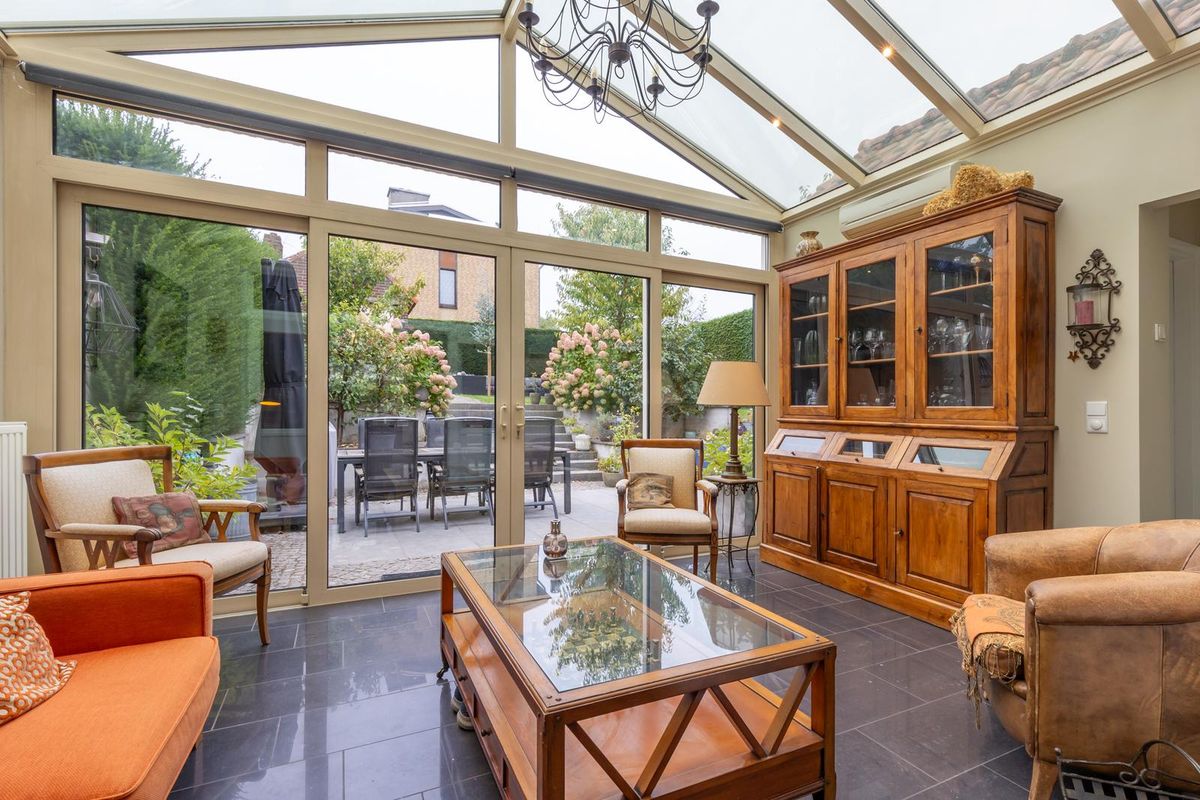 De tuinkamer (4.66*3.11m) is voorzien van een tegelvloer, airco en heeft veel daglichttoetreding door de grote glazen pui en het glazen dak. Van hieruit bereikt men middels een schuifpui het terras en de fraai aangelegde tuin.