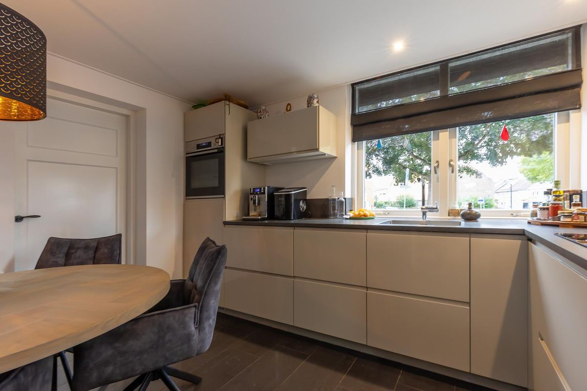 De keuken (3.52/2.99*2.95m) is vernieuwd in 2023 en uitgevoerd in een hoekopstelling en voorzien van een inductiekookplaat met randafzuiging, oven, koelkast en een vaatwasser.