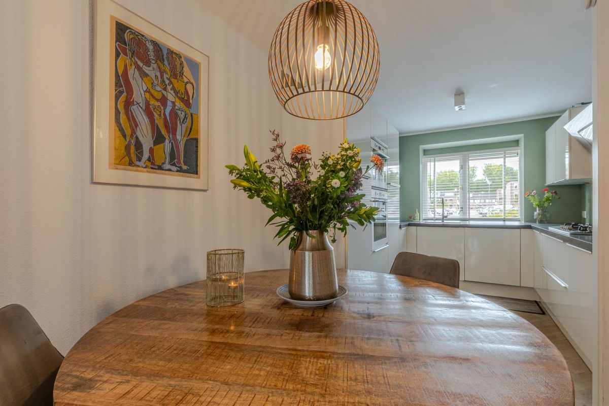 De woning beschikt over vijf kamers, waaronder een ruime woonkamer met eikenhouten vloer en spachtelputz wanden, een moderne halfopen keuken voorzien van diverse inbouwapparatuur en directe toegang tot de zonnige achtertuin. Op de eerste verdieping bevinden zich drie slaapkamers en een complete badkamer met een ligbad en douchecabine. De zolderverdieping is verrassend praktisch ingedeeld met onder andere een aantrekkelijke vierde slaapkamer met een fraaie schuifdeurenkast met wasmachine- en drogeraansluiting.