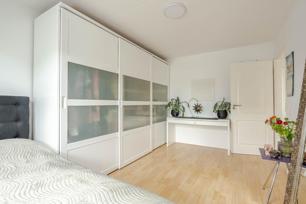 * Slaapkamer IV voorzien van laminaatvloer, groot en klein dakraam (21-01-2021), fraaie wandkast met schuifdeuren met opstelling van de wasmachine-aansluiting en een aparte ruimte met de opstelling van de combiketel.