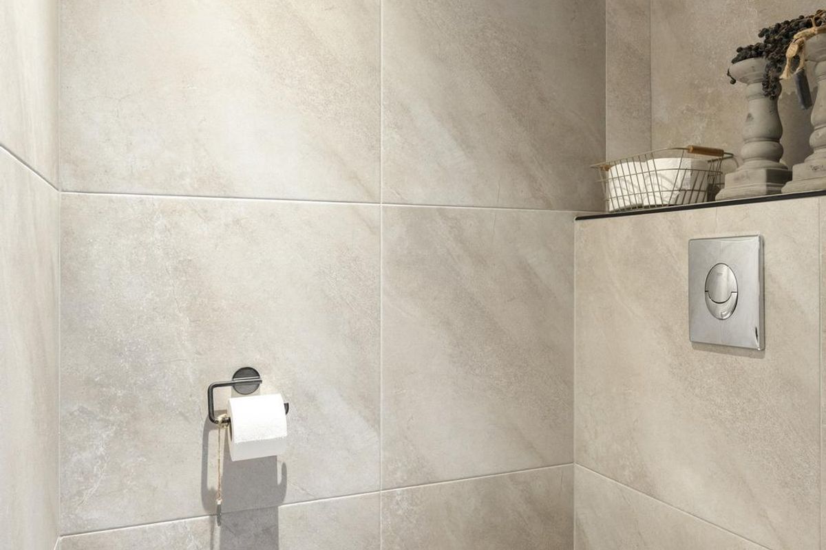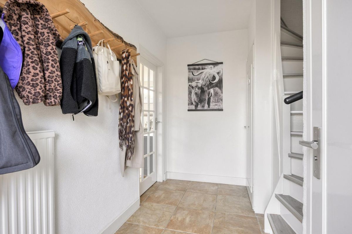 Via de hal betreedt u de woning, hier bevinden zich de garderoberuimte, de meterkast en de moderne toiletruimte. De geheel betegelde toiletruimte is voorzien van een hangend toilet (2021). De hal biedt u toegang tot de woonkamer.