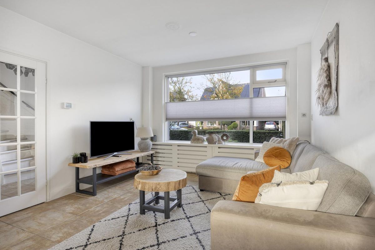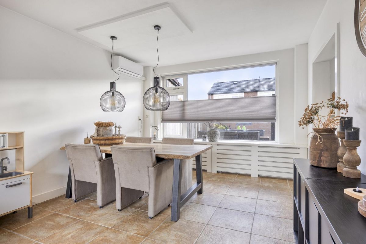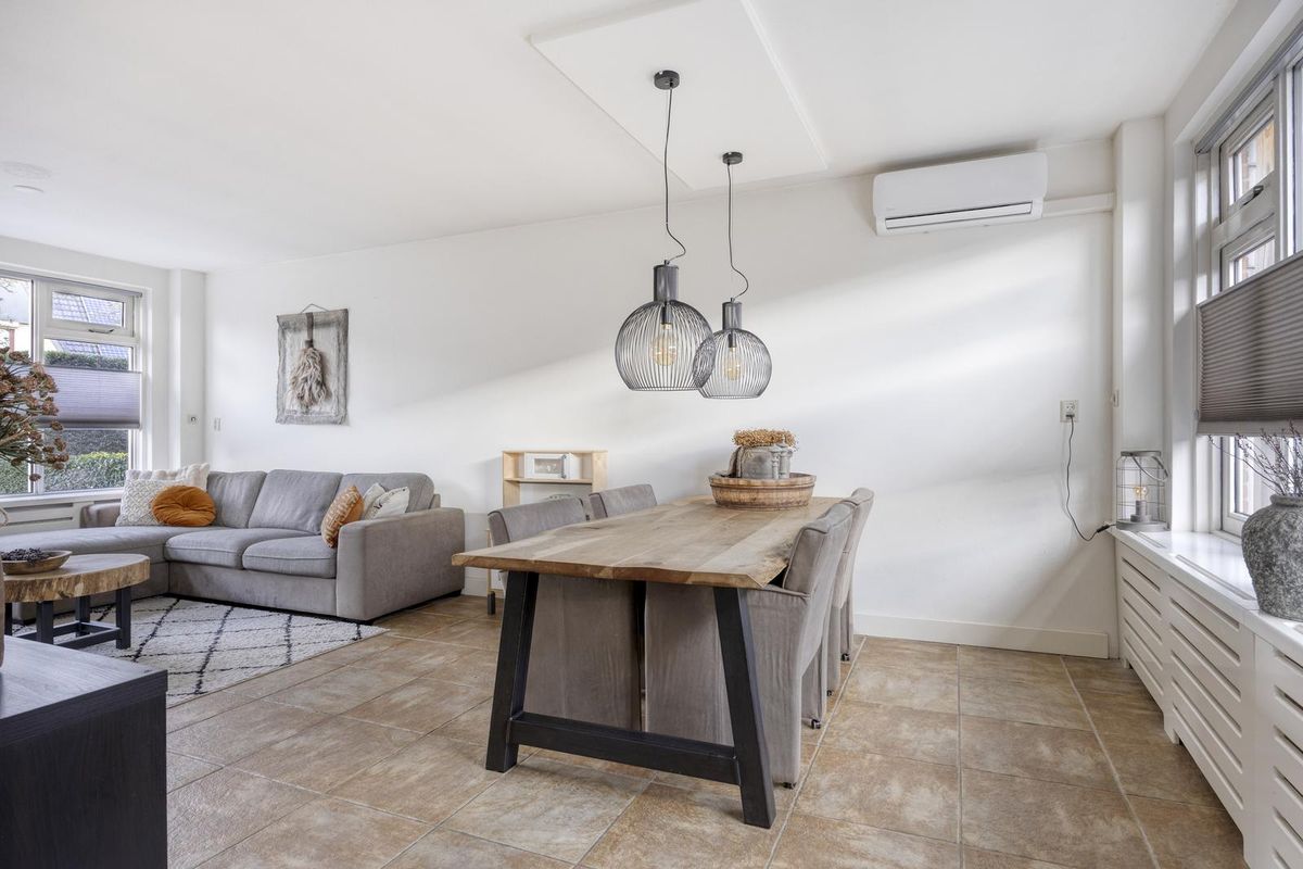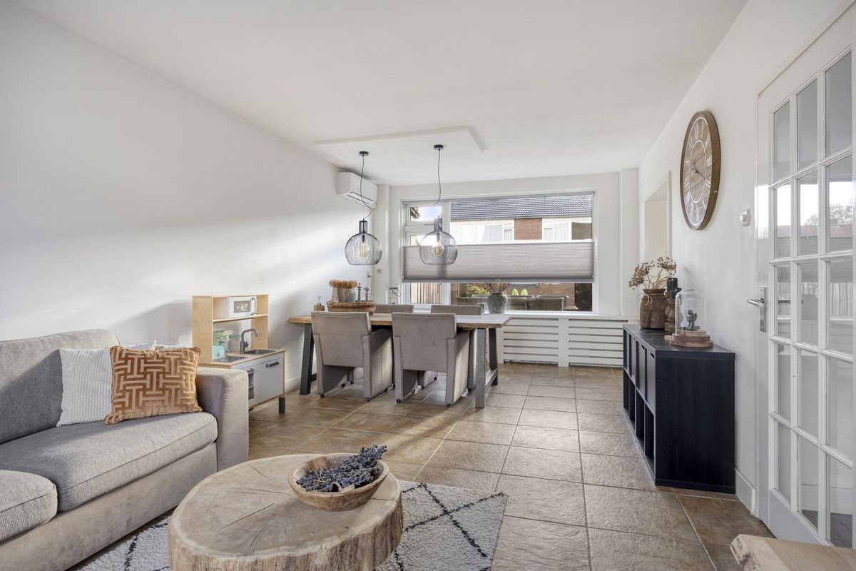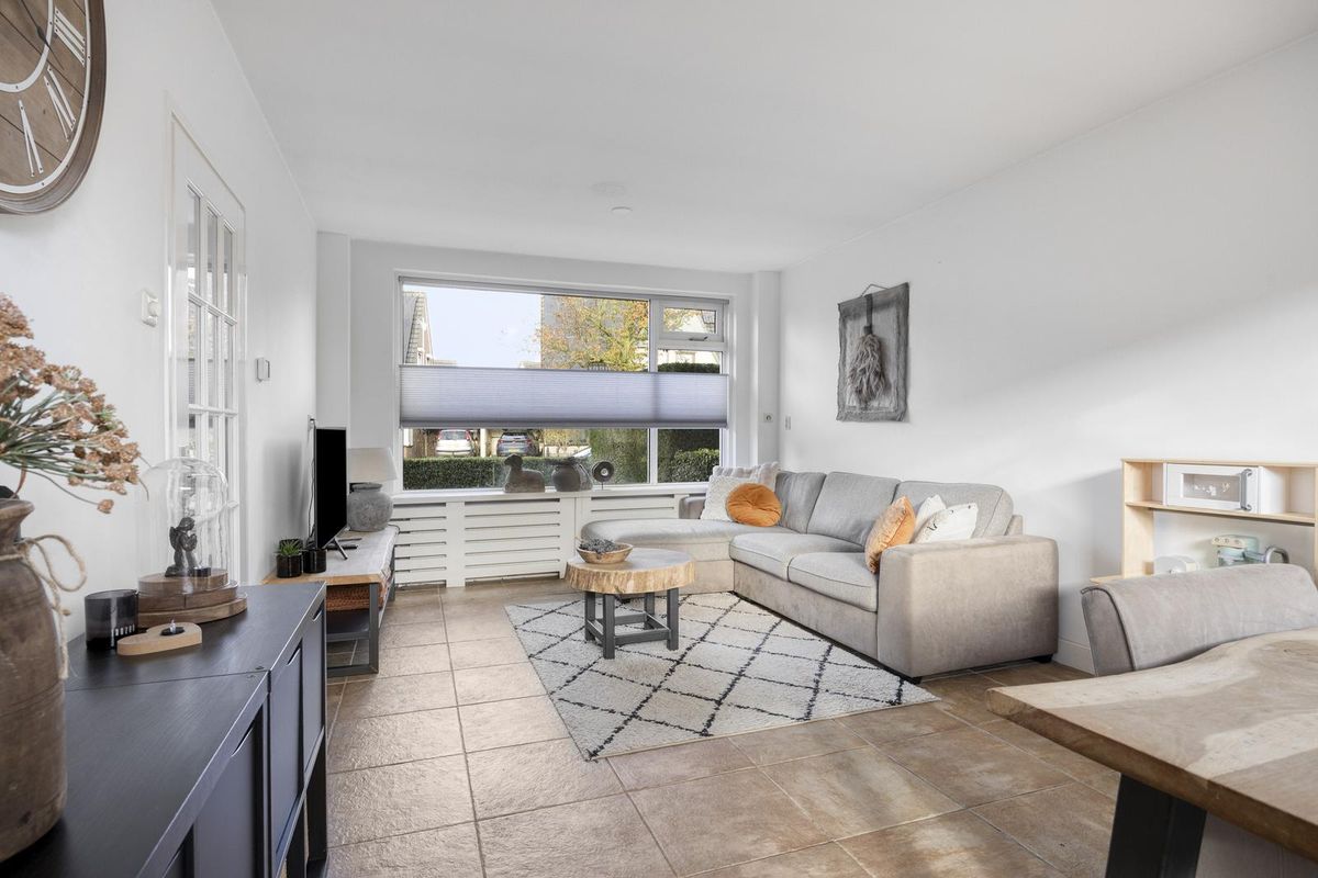 De fijne woonkamer betreft een keurig afgewerkte ruimte. De fraaie plavuizen in combinatie met het nette stucwerk biedt de ruimte een fijne uitstraling. Door de grote raampartij aan zowel de voor- als achterzijde beschikt de ruimte over een aangename lichtinval. Aan de achterzijde van de woonkamer is ruimte voor een grote eettafel.