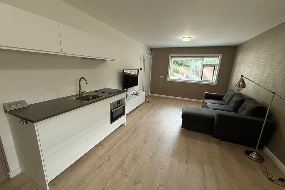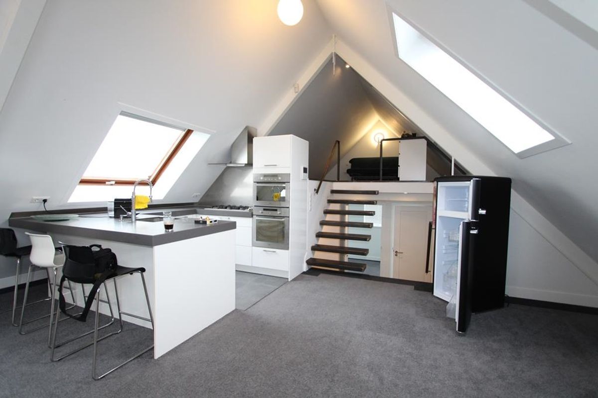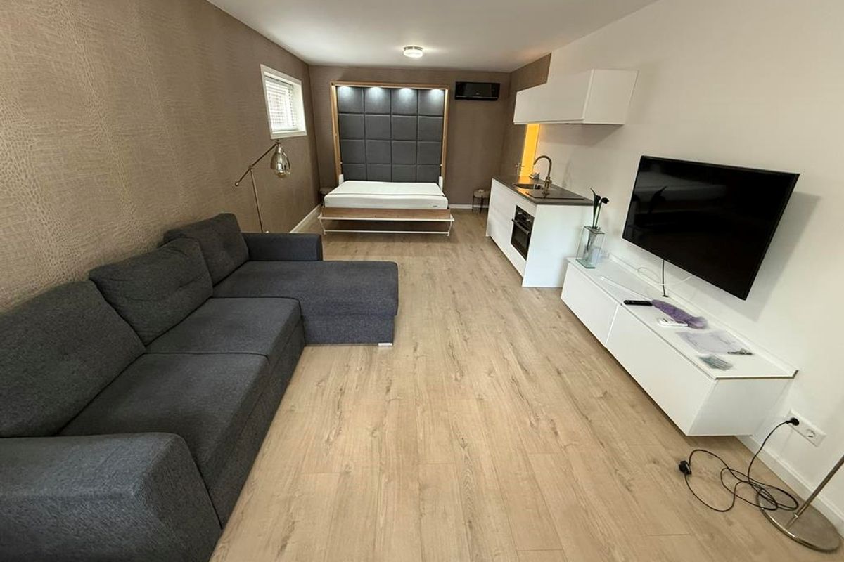 The ground floor is a furnished studio with it's own kitchen and bathroom. The apartment on the 1st and 2nd floor has a living room, a kitchen, 2 bedrooms and a bathroom.