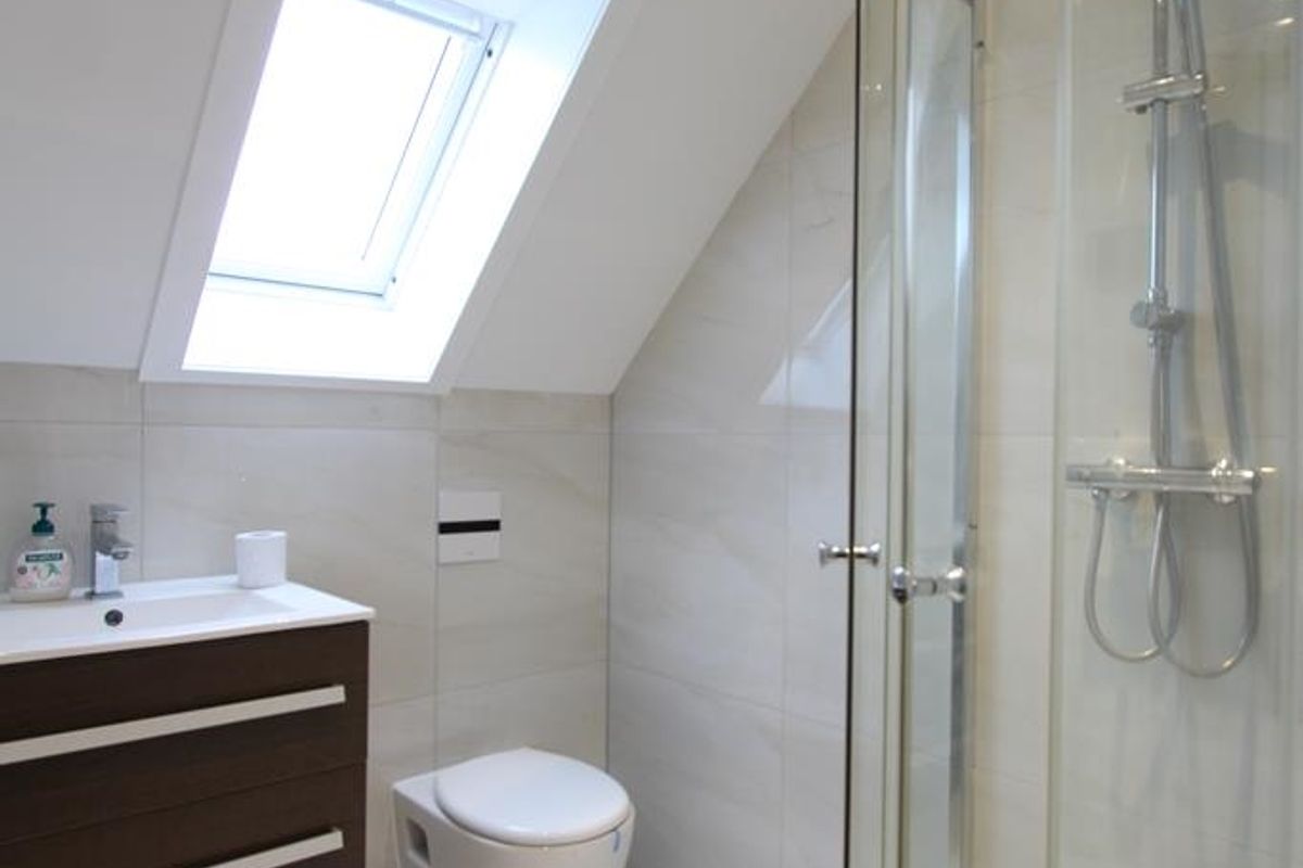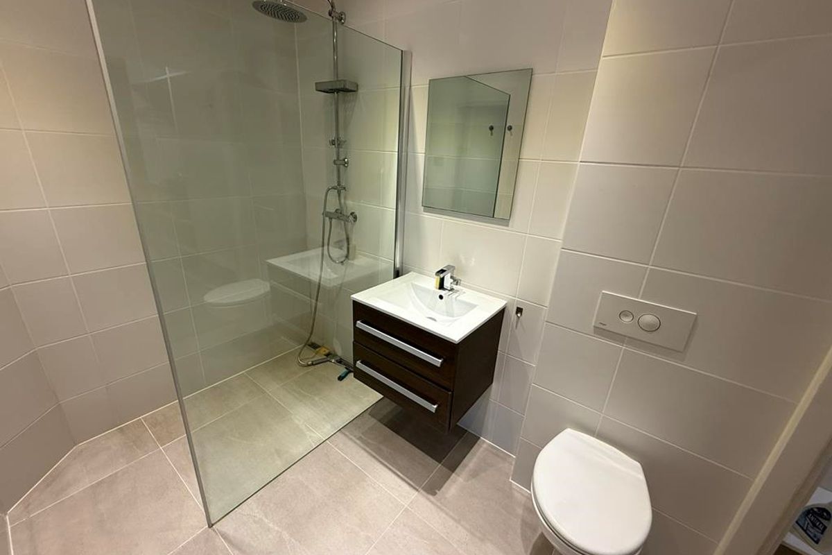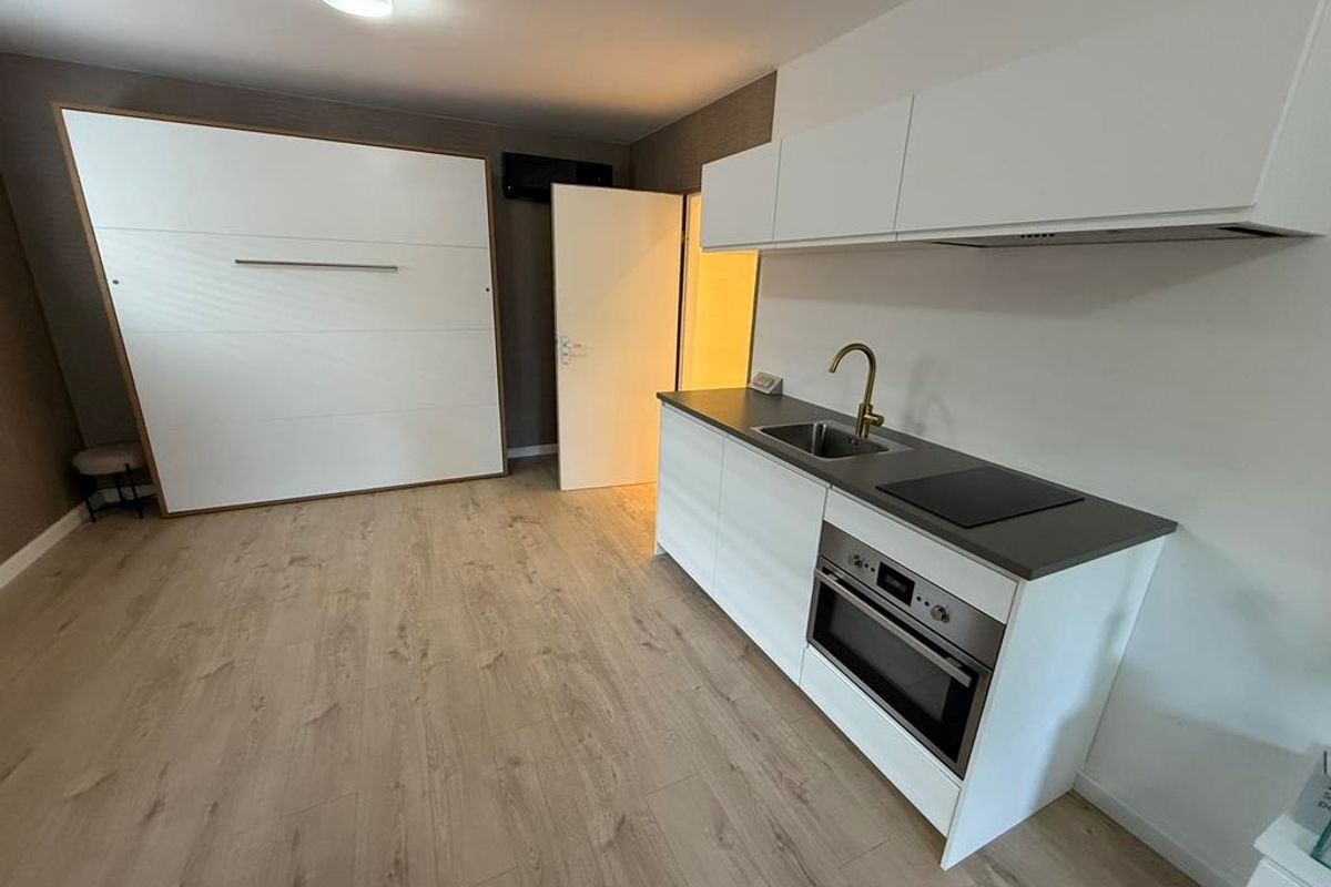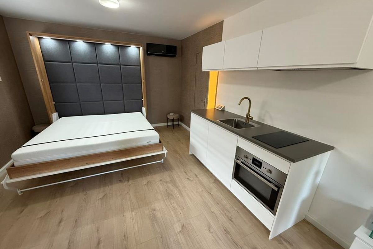 The ground floor is a furnished studio with it's own kitchen and bathroom. The apartment on the 1st and 2nd floor has a living room, a kitchen, 2 bedrooms and a bathroom.