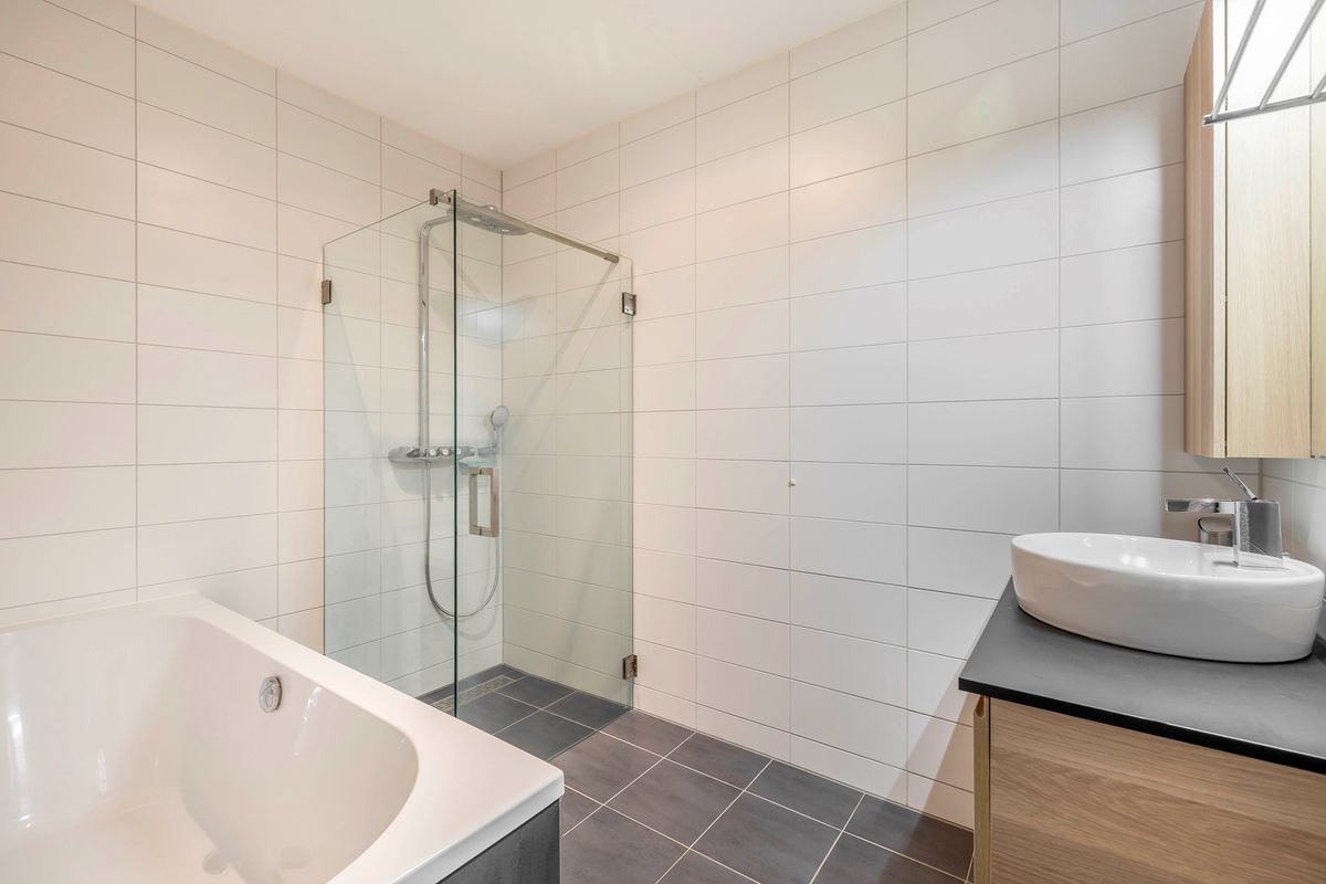 De badkamer is geheel betegeld en keurig afgewerkt. De ruimte is voorzien van een inloopdouche, ligbad, handdoekradiator en een stijlvol wastafelmeubel met bijpassende spiegelkast. De ventilatie is mechanisch en eenvoudig vanuit de badkamer te bedienen.