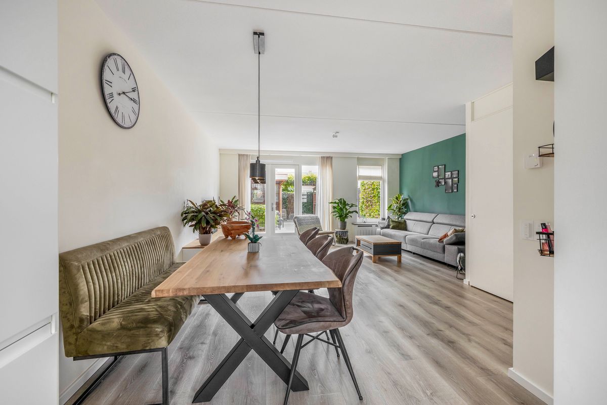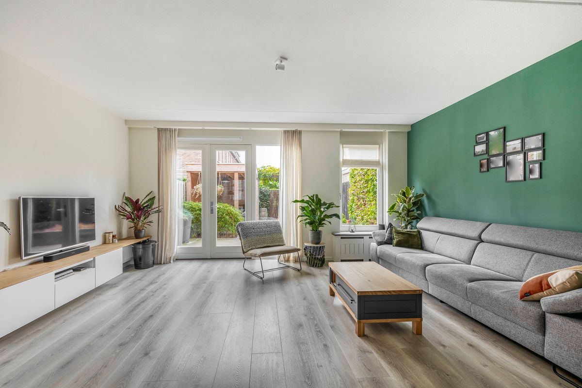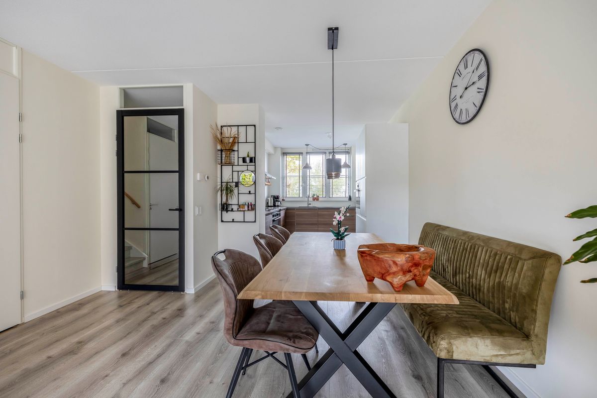 De woonkamer is met circa 32 m² royaal te noemen en biedt ruimte aan elke woonwens - of dat nu een grote hoekbank, een riante eettafel of beide is. Onder de trap bevindt zich een diepe bergkast voor uw voorraad.