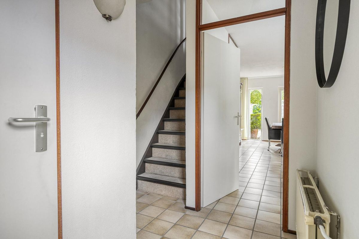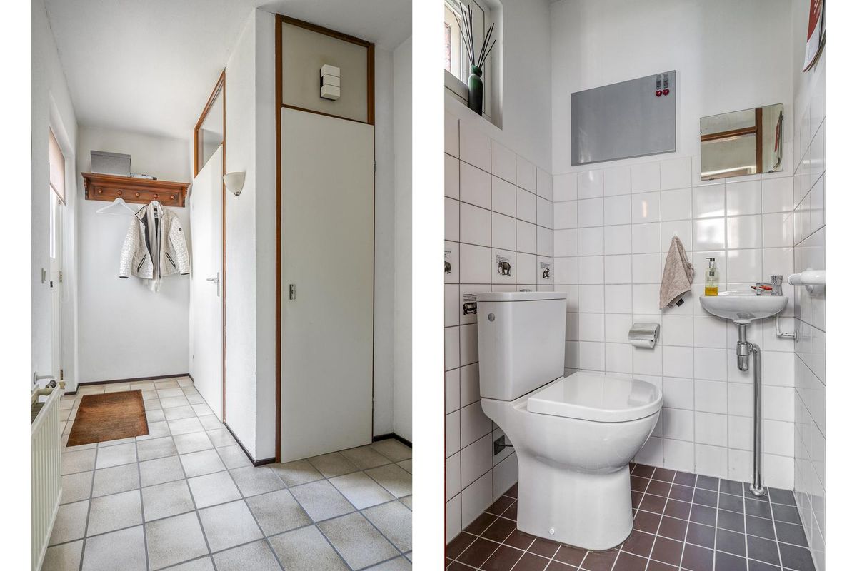 Via de entree aan de voorkant van de woning kom je in de hal die je toegang geeft tot de meterkast (2 aardlekschakelaars, 6 lichtgroepen) en de betegelde toiletruimte met closet. In de hal is de vaste trap naar de 1e verdieping. Vanuit de hal ga je naar de woonkamer/openkeuken.