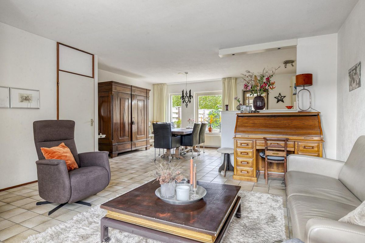 De gezellige woonkamer is maar liefst 40 m³ groot (incl. openkeuken). De wanden en plafonds zijn gestuct en de vloer is voorzien van lichte tegels. De raampartijen aan de voor- en achterzijde zorgen voor veel lichtinval. Er is een provisiekast voor extra bergruimte.