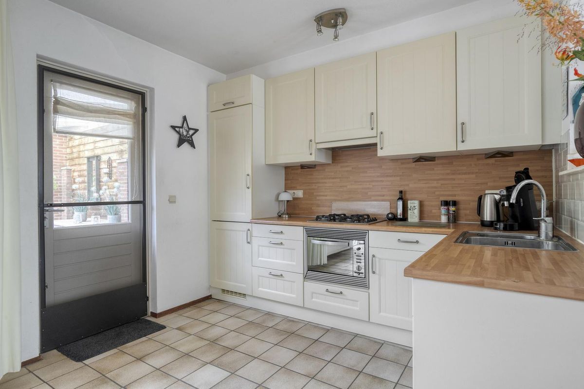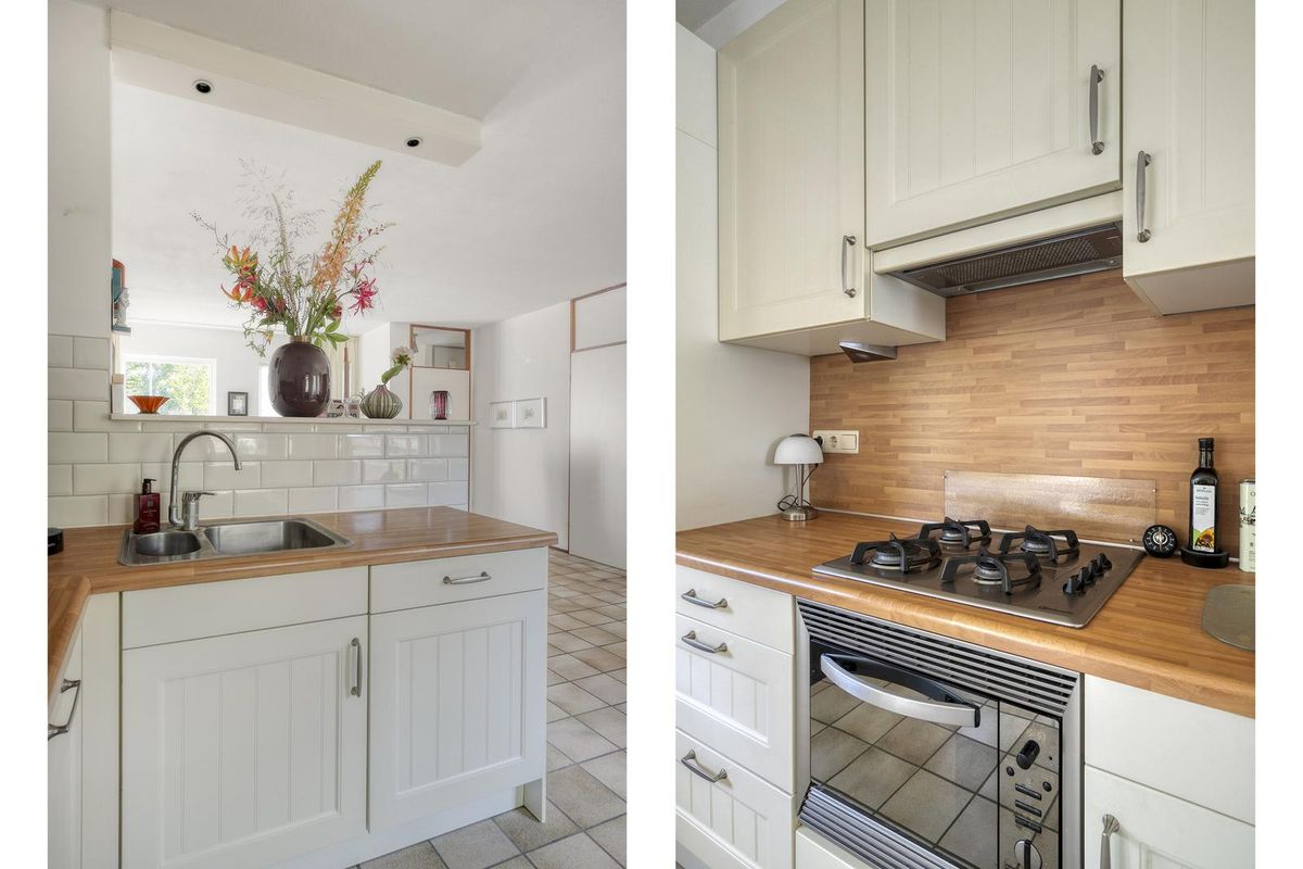 De keuken heeft een neutrale uitstraling en is compleet qua uitrusting. De witte boven- en onderkasten en het kunststof werkblad met houtlook maken de keuken tijdloos. Qua apparatuur is er een RVS-spoelbak, een 4-pits kookplaat met een combi oven/magnetron, een met RVS afzuigkap, een vaatwasser en koel-/vriescombinatie.