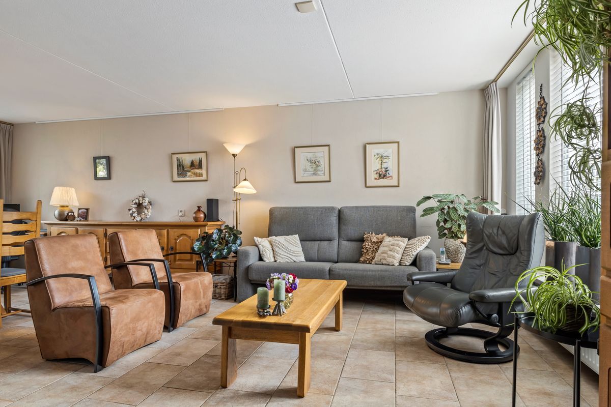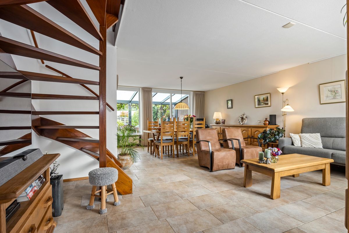 De woonkamer is voorzien van een onderhoudsvriendelijke tegelvloer, een vaste trapopgang, een open keuken en een tuindeur voor direct toegang tot het overdekte terras. Wat bij binnenkomst direct opvalt is de hoeveelheid daglichttoetreding. Dit komt doordat de woonkamer aan zowel de voor-als achterzijde grote raampartijen heeft.