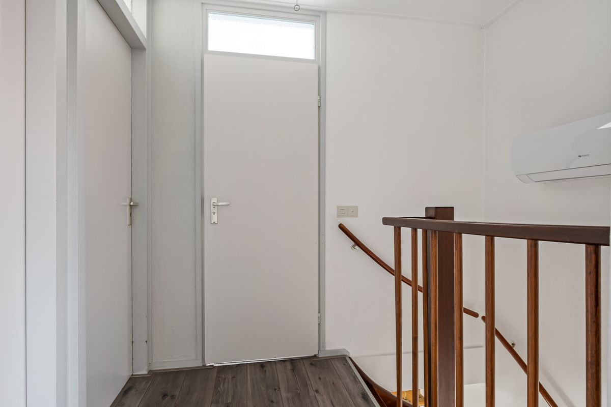 De overloop alsmede alle slaapkamers zijn voorzien van dezelfde laminaatvloer. Boven het trapgat hangt een grote airco-unit. Via een vlizotrap op de overloop heeft u toegang tot de bergzolder met opstelplaats van de Cv-ketel. Het is mogelijk om een vaste trap naar zolder te creëren zodat u deze ruimte als extra kamer kan gebruiken.
