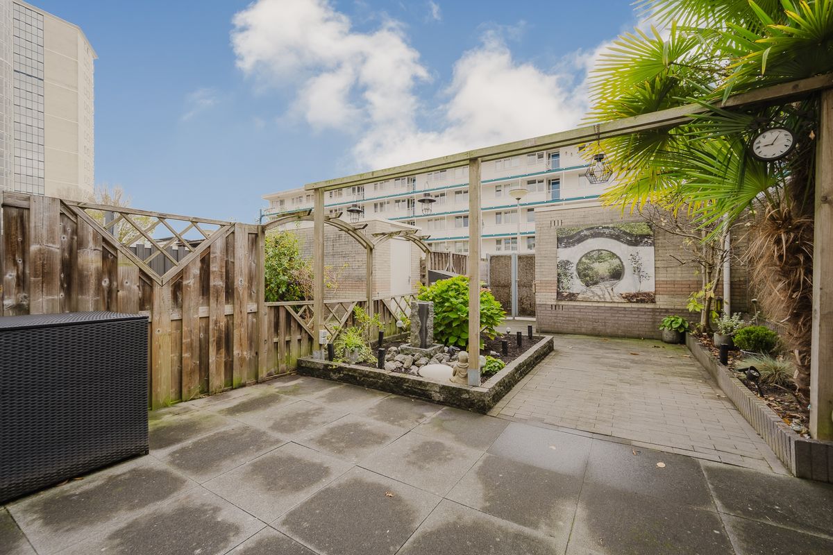 De hal geeft toegang tot de meterkast, de trapopgang en het moderne toilet (2024). Vanuit de hal stap je de ruime woonkamer binnen. Aan de voorzijde bevindt zich de open keuken, voorzien van een 4-pits kookplaat, combimagnetron en vaatwasser. Vanuit de woonkamer heb je toegang tot de diepe achtertuin (ca. 11 meter), gelegen op het zuiden, volledig betegeld in 2020, met achterom, elektra en een stenen berging.