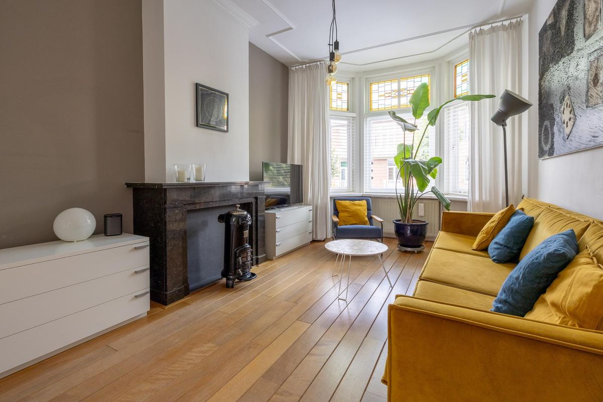 Het appartement van 82m² is voorzien van een in 2022 gemoderniseerde keuken en badkamer en 2 slaapkamers. Dankzij de authentieke details, zoals paneeldeuren, een en suite schuifseparatie en hoge plafonds met ornamenten, ademt het appartement nog steeds de charme van vroeger en door de zonnepanelen woont u hier bovendien energiezuiniger.