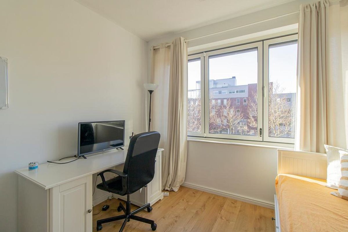 This beautiful fully renovated and spacious apartment has no less than three bedrooms and is located in IJburg. The apartment on the second floor can be reached by a large elevator or stairs via the joint entrance. The entrance of the apartment gives access to the hallway. Two of the three rooms are accessible from the hallway. The living room with open kitchen is located at the rear.