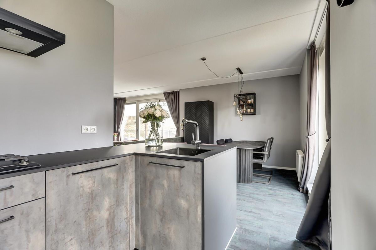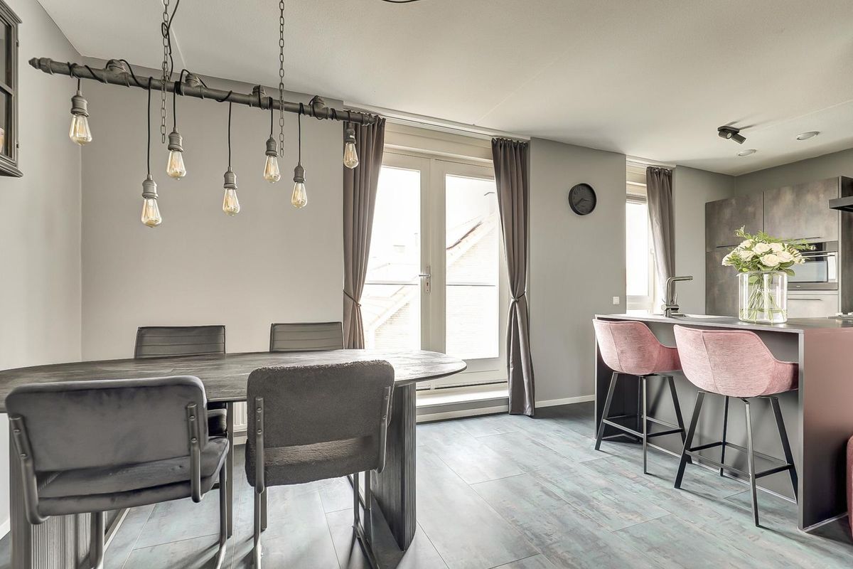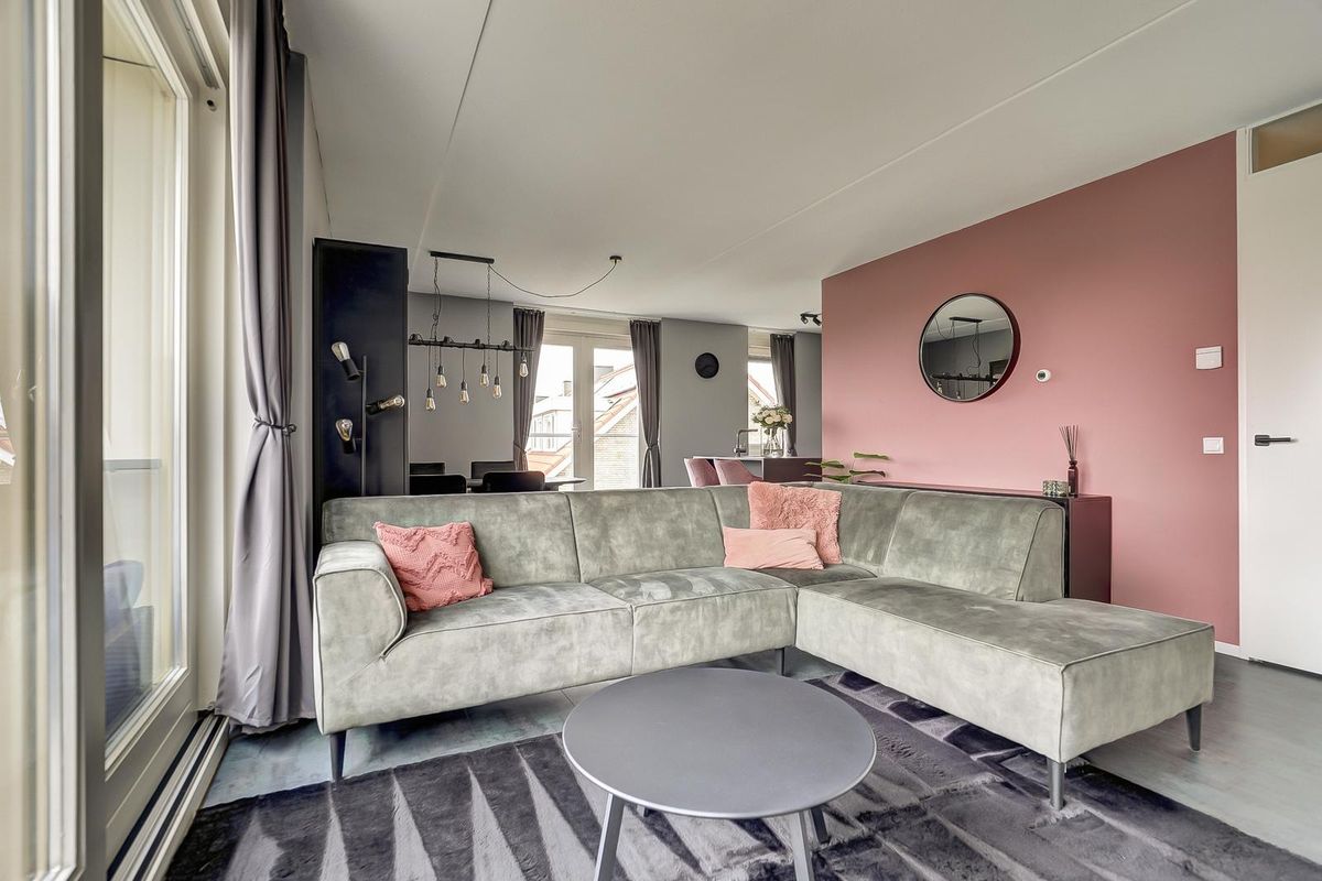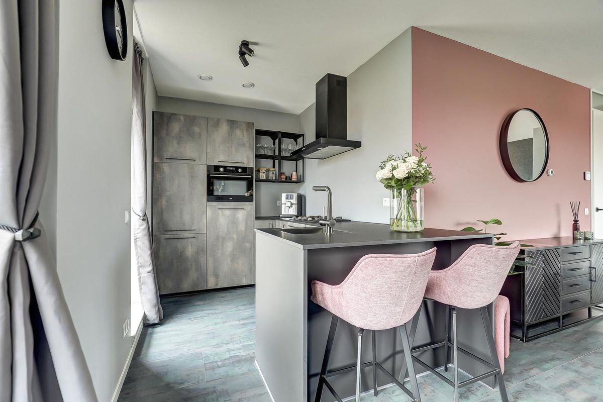 De woonkamer is heerlijk licht door de grote ramen en de ligging op de topverdieping. Via de schuifdeur stap je zo het zonnig gelegen balkon (Zuidoosten) op – een fijne plek om te ontspannen of buiten te eten. Voor de namiddag is het heerlijk zitten voor het Franse balkon op het Zuidwesten. De open keuken is via een barretje mooi aangesloten aan de woonkamer en is uitgerust met een koel-vriescombinatie, combimagnetron, vaatwasser, 4-pits gaskookplaat en afzuigkap.