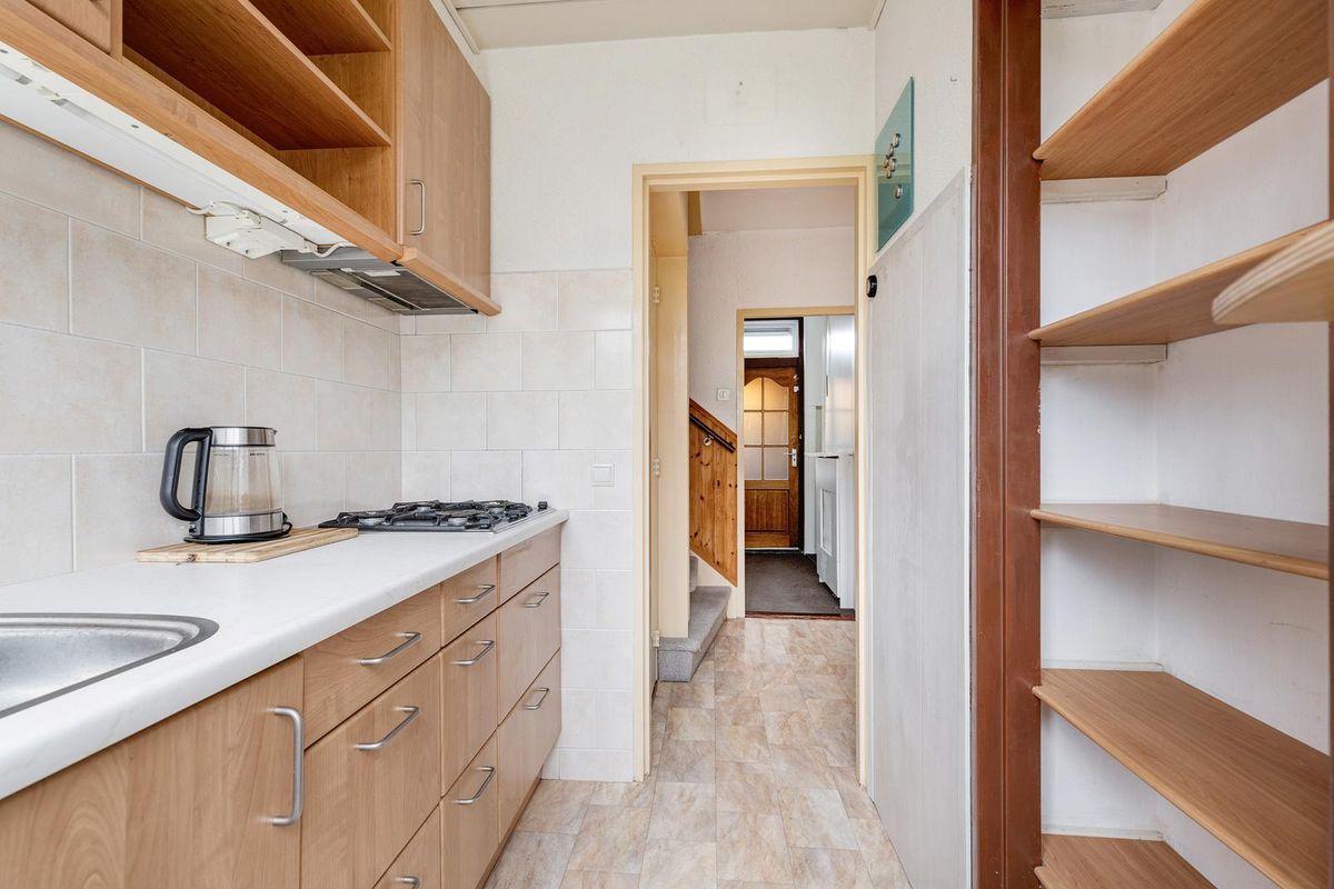 Binnen treft u een lichte doorzonwoonkamer, een aparte keuken, bijkeuken met doorgang naar de berging, drie slaapkamers en een nette badkamer op de eerste verdieping, en een ruime vierde slaapkamer met dakkapel op zolder. De woning is gedateerd maar biedt volop mogelijkheden om te moderniseren en volledig naar eigen smaak aan te passen.