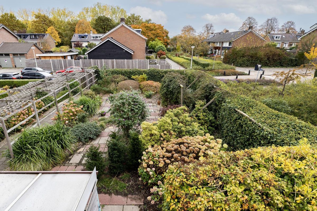 De tuin is werkelijk een unieke buitenruimte: rondom de woning gelegen, met volop groen, privacy en verschillende zitmogelijkheden. De riante zijtuin is perfect voor lange zomeravonden of een gezellige barbecue met vrienden. In 1978 is er een extra perceel van 168 m² bijgekocht, wat het totale perceel brengt op een riante 345 m², een buitenkans in deze gewilde woonwijk.