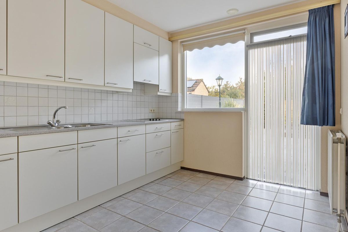 De zonnige tuin rondom de woning is een fijne plek om buiten te zijn. Met een netjes aangelegd terras en zorgvuldig onderhouden borders voelt het hier prettig en verzorgd. Dankzij de vrije achterom is de tuin makkelijk bereikbaar, en de ligging op het westen zorgt voor middag- en avondzon. De aangebouwde stenen garage en de berging daarachter bieden veel praktische ruimte, ideaal voor fietsen, gereedschap of opslag.