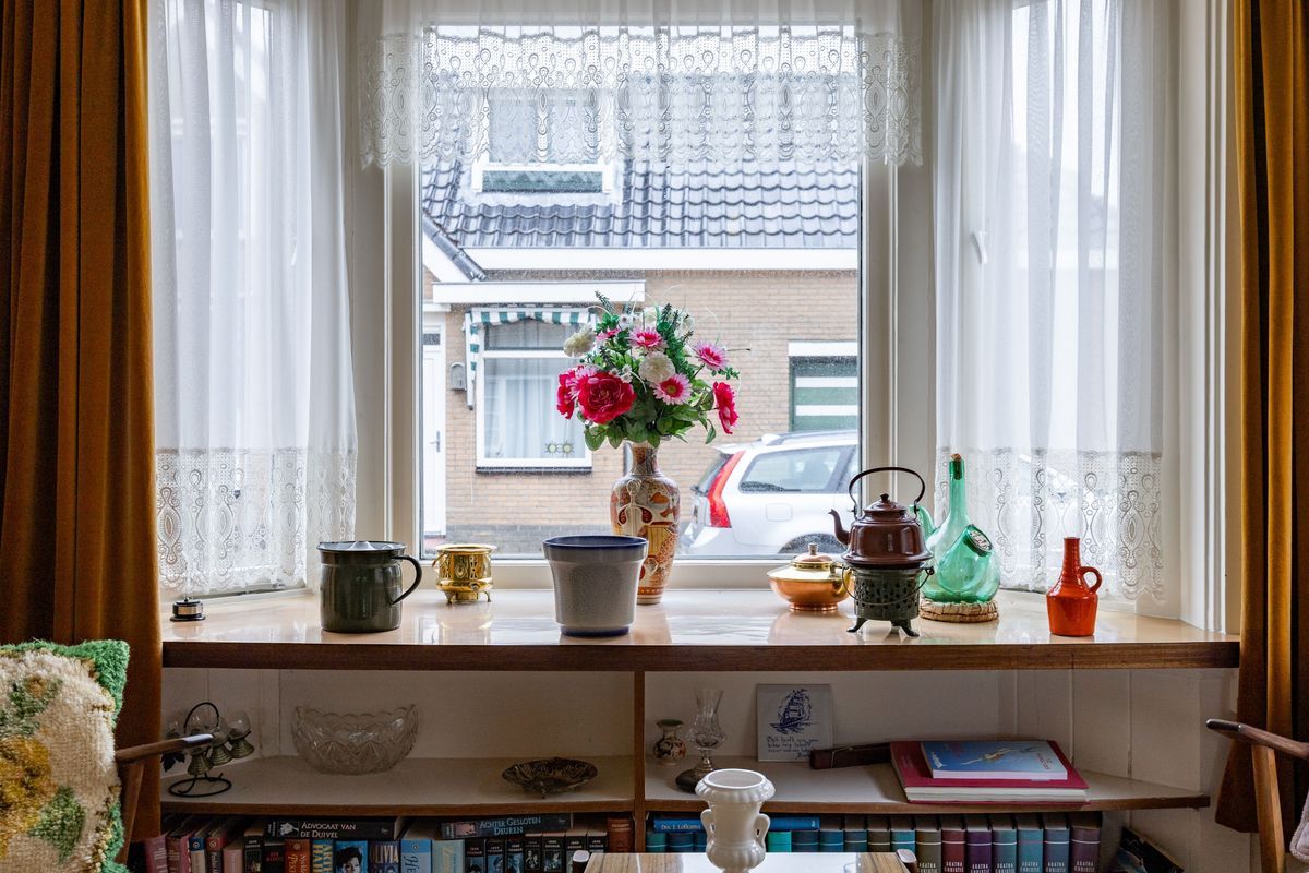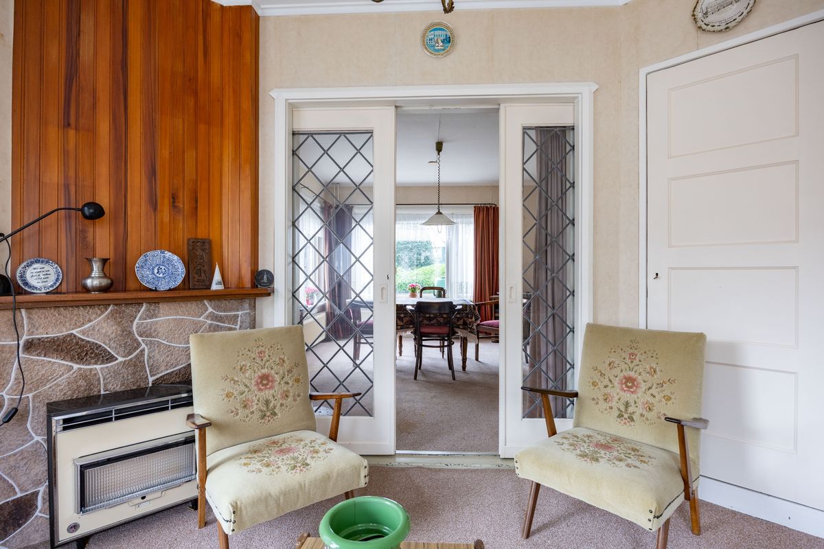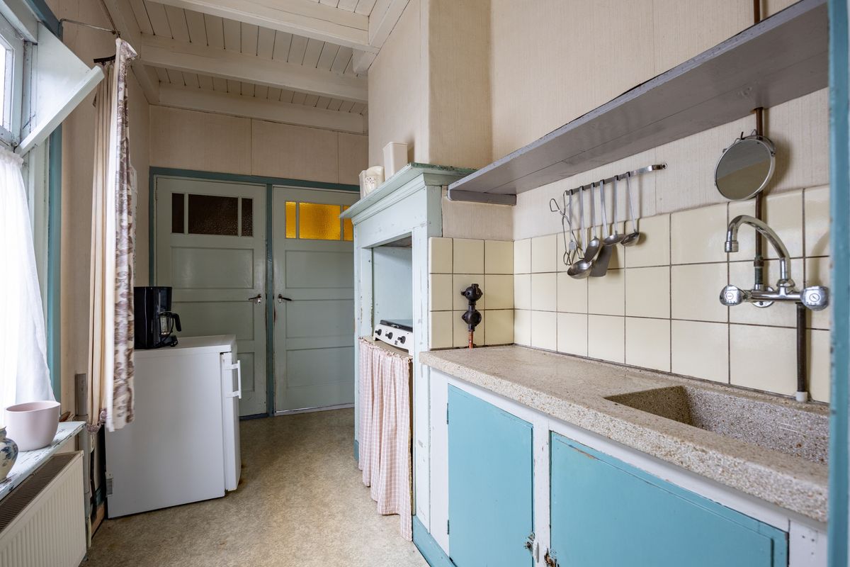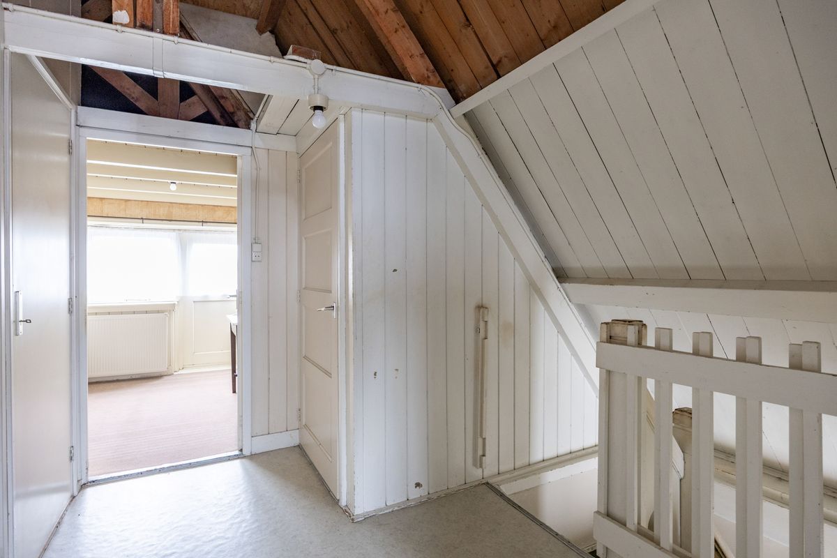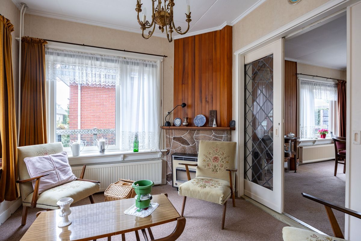 Karakteristieke jaren ’30 woning met diverse authentieke elementen zoals de suitedeuren in de woonkamer, de mooie houten trap, de bedsteden en de schouw in de keuken.