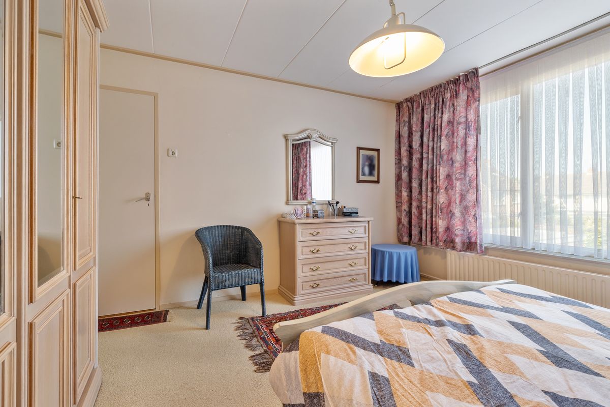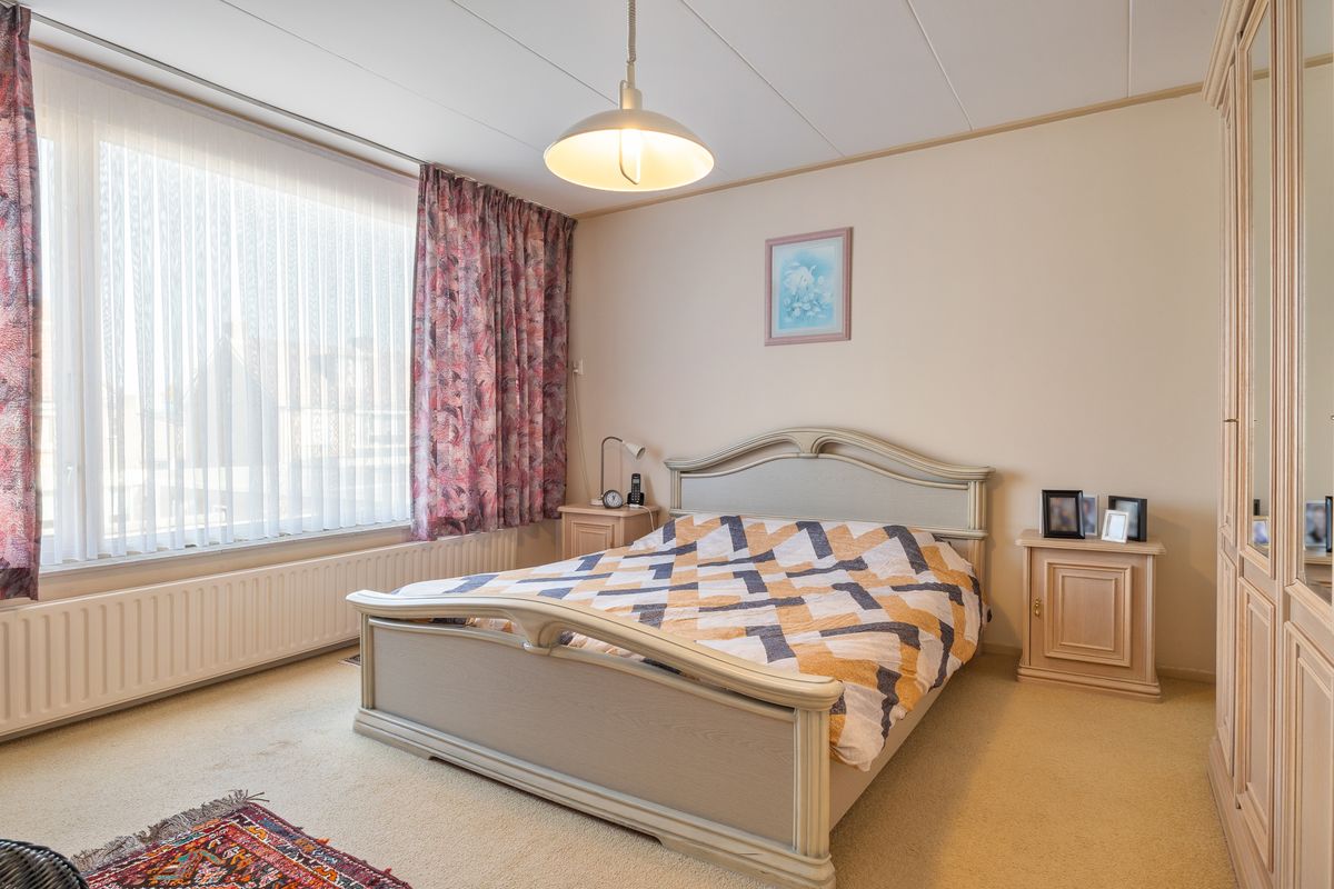 Slaapkamer 1 gelegen aan de voorzijde van de woning. Deze slaapkamer is voorzien van een overdekt balkon.