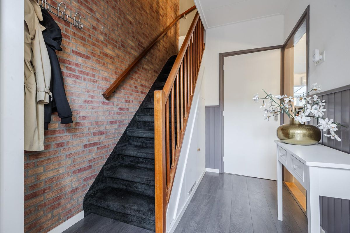 In de hal met laminaatvloer vindt u de meterkast, trapkast, toilet en trap naar de 1e verdieping.