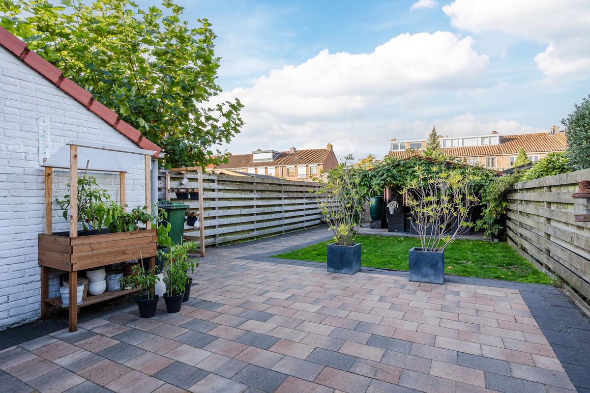 De bijzonder diepe en verzorgde tuin beschikt over een ruim terras en een grasveld. Achterin de tuin bevindt zich een tuinhuis met een gezellige overkapping. Er is een vrij achterom. In deze tuin kunt u alle seizoenen heerlijk genieten van het buitenleven.