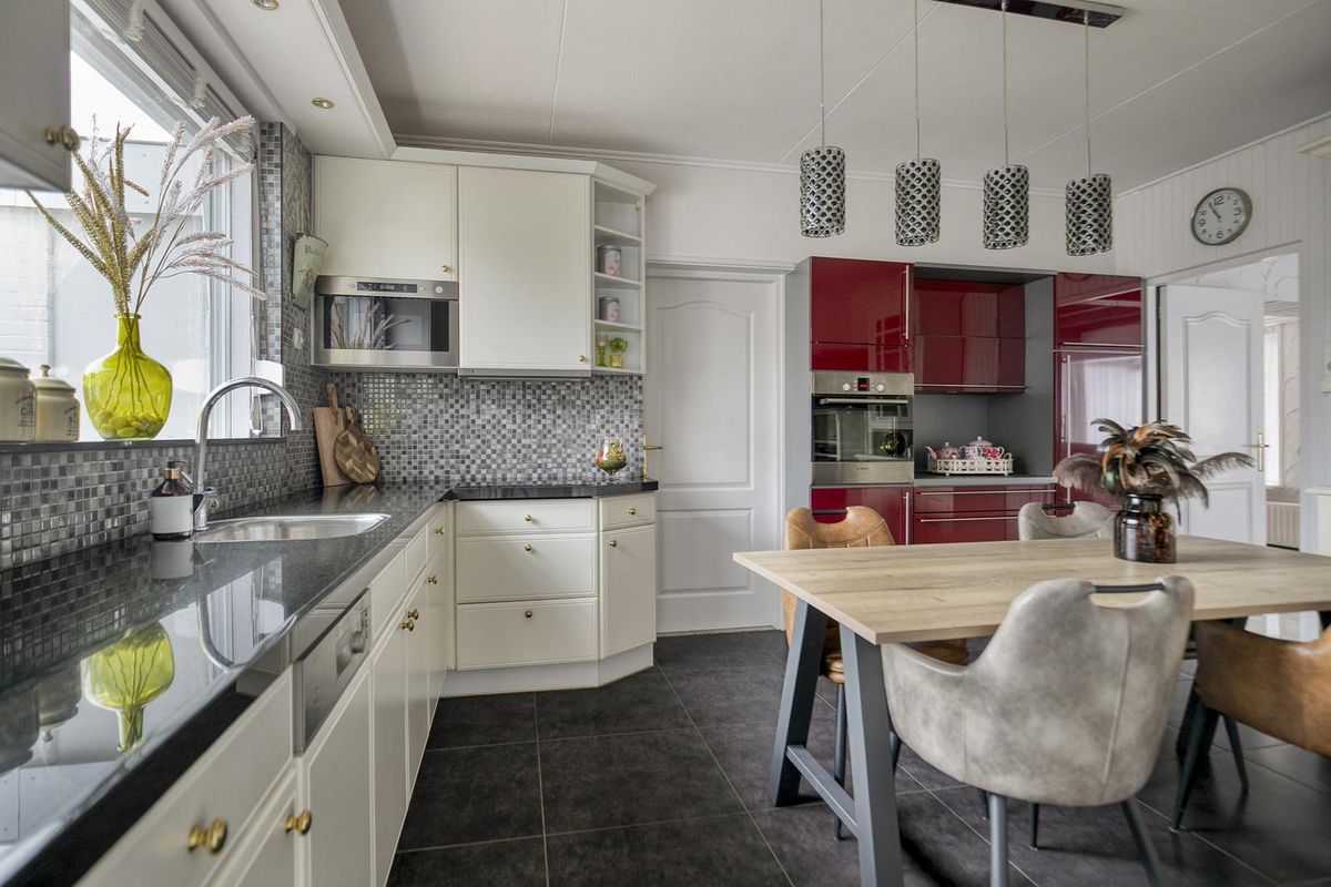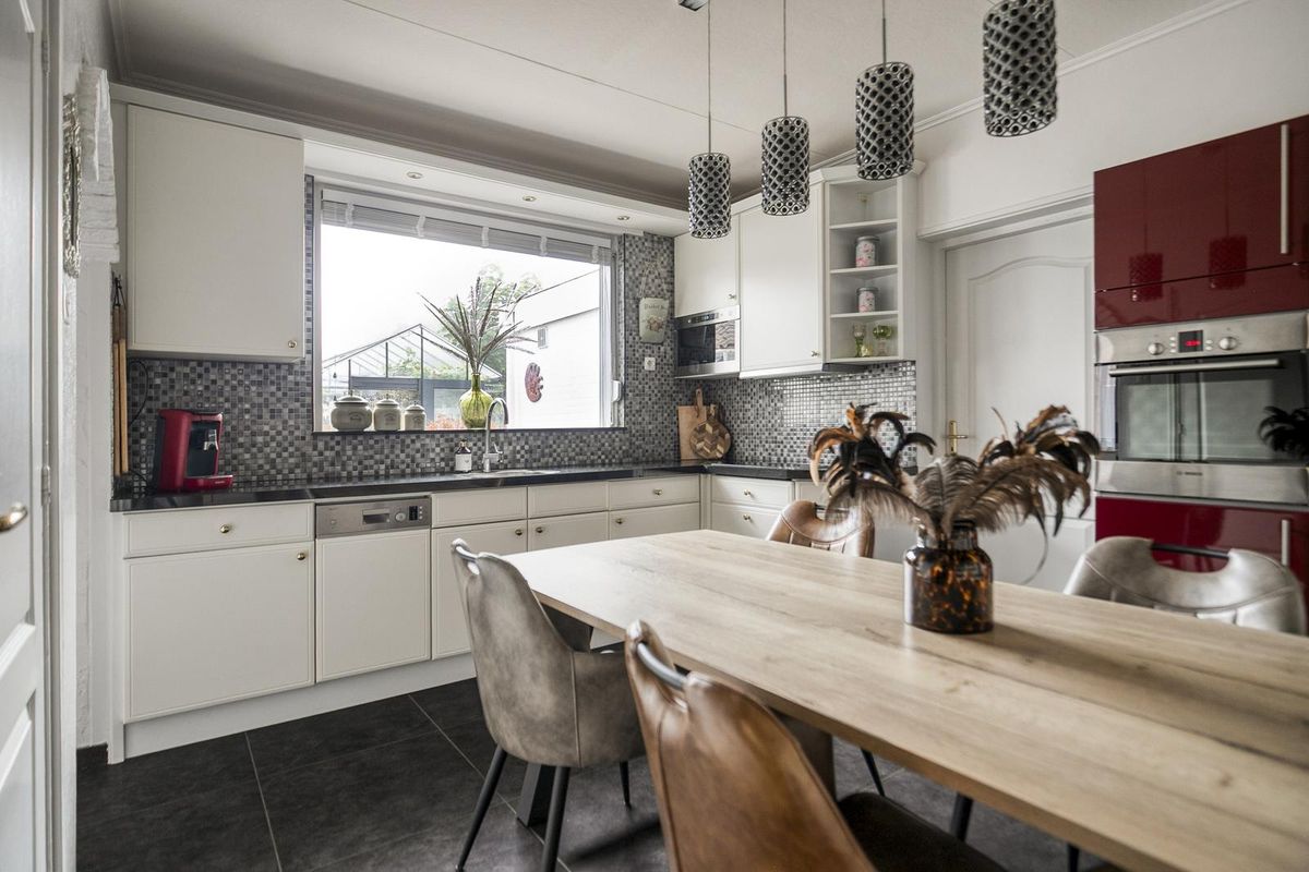 De tuin is verzorgd aangelegd met gazon, borders en meerdere terrassen, zodat je de hele dag een plekje in zon of schaduw vindt. Achterin staat een kas en via de vrije achterom is de tuin goed bereikbaar. De garage heeft een elektrische deur en elektra, en grenst aan een extra berging – ideaal voor fietsen, tuingereedschap of opslag. Dankzij de ligging op het zuidoosten geniet je hier volop van de zon.