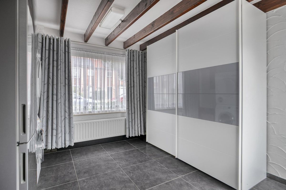 Bij binnenkomst in de hal valt de ruimte direct op. Vanuit hier bereik je het toilet met fonteintje, de meterkast, de trap naar boven en de woonkeuken. De royale keuken is voorzien van inbouwapparatuur en biedt plek voor een gezellige eettafel. Aansluitend ligt de bijkeuken met witgoedaansluiting en toegang tot de achtertuin.