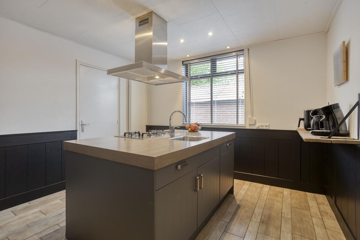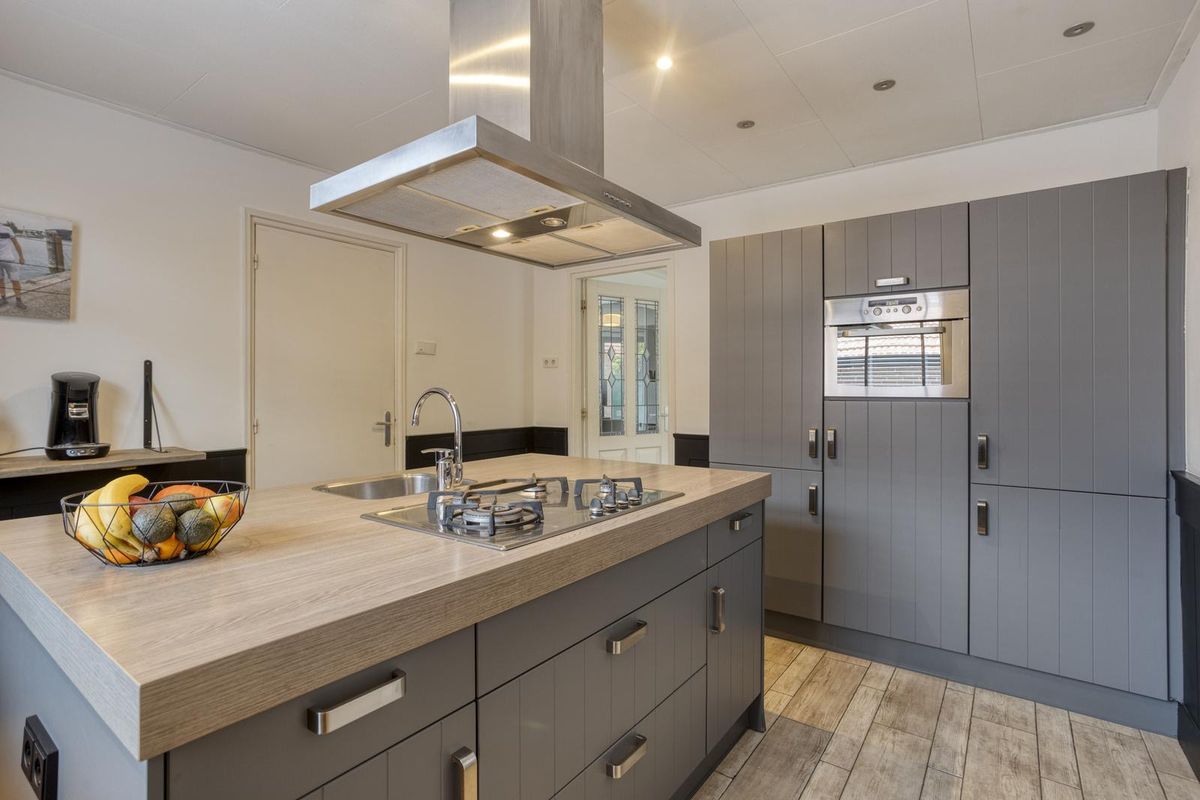 In het hart van deze woning bevindt zich de royale leefkeuken met kookeiland, waar koken en samenzijn centraal staan. De keuken is voorzien van moderne inbouwapparatuur en heeft een warme, eigentijdse uitstraling. Aangrenzend ligt de praktische bijkeuken met witgoedaansluitingen en extra opbergruimte. Vanuit hier is er direct toegang tot de achtertuin.