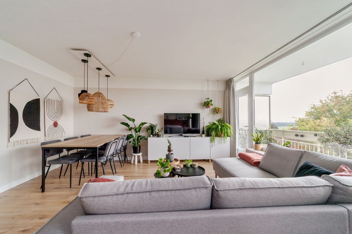 Zowel vanuit de woonkamer als vanuit de slaapkamer is er een deur naar het ruime balkon over de volle breedte op het Zuid-Oosten met weids uitzicht op groen.