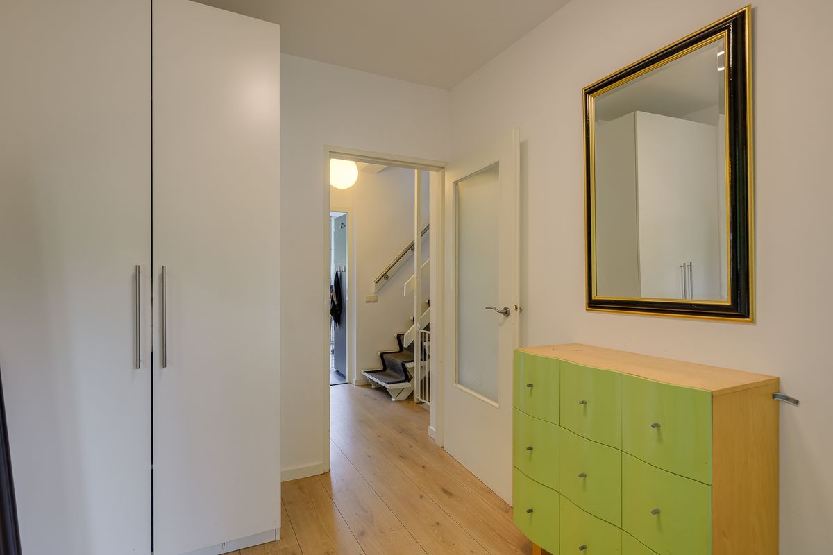 Je komt aan in een rustige, groene straat waar kinderen nog op de stoep spelen. Voor de deur een brede oprit met plek voor twee auto’s en een garage die je zowel praktisch als creatief kunt benutten. Binnen word je verwelkomd door een lichte vestibule met modern toilet en trapopgang.
