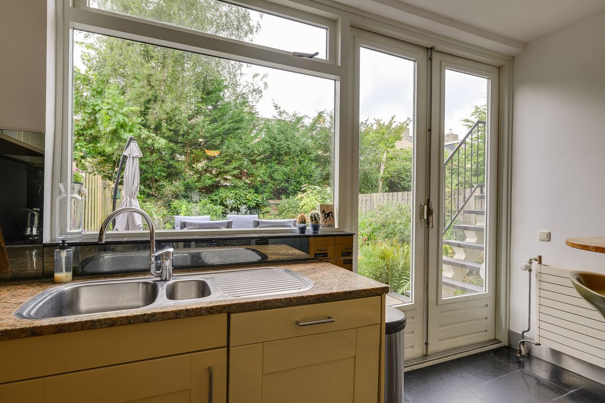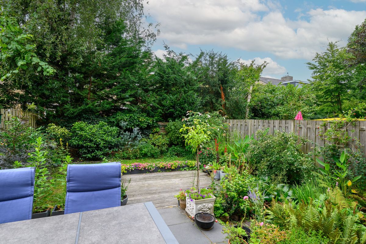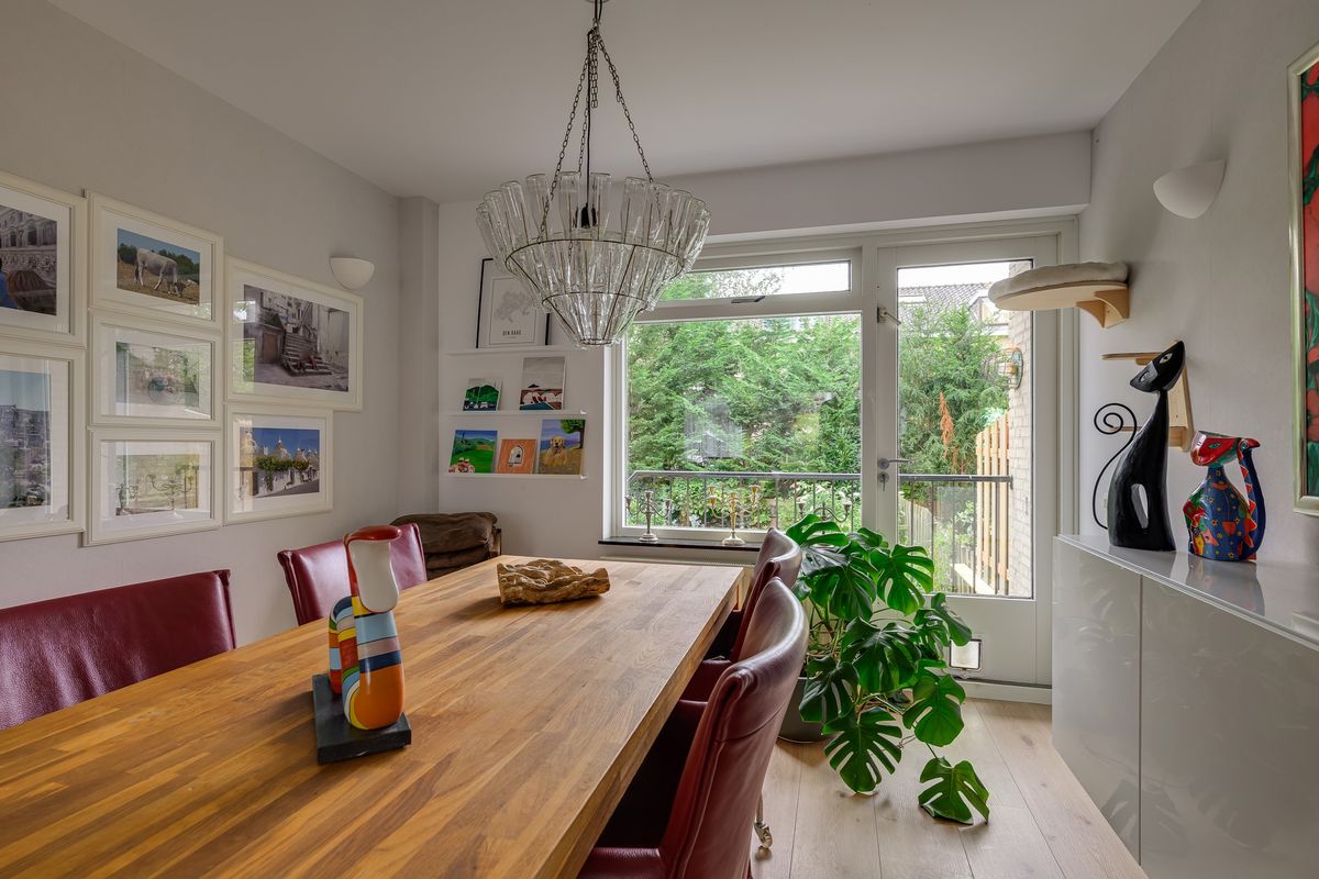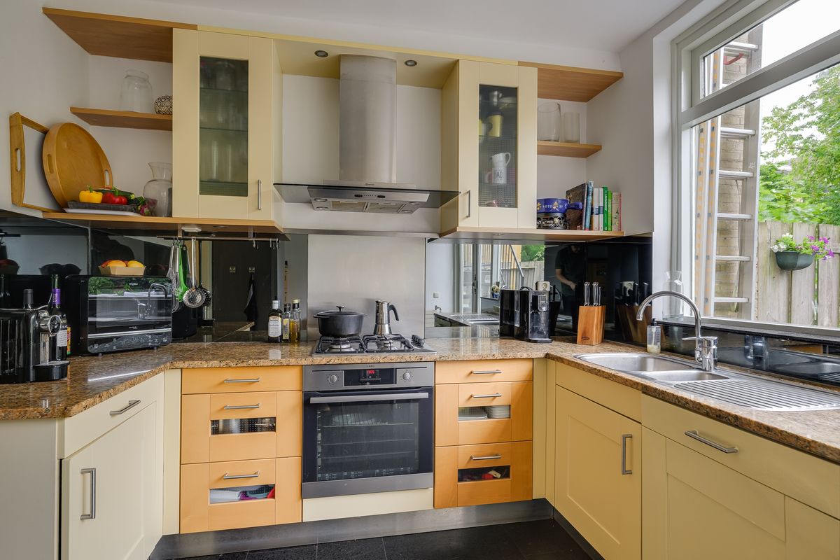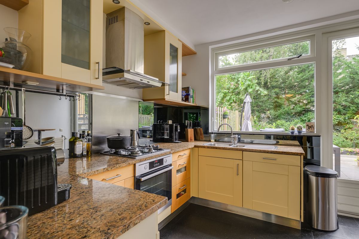 De woonkeuken is een plek waar het gezin samenkomt. Het luxe hardstenen blad, de inbouwapparatuur en de ruime kastenwand maken koken hier een feestje. Via de achterdeur stap je direct de diepe, groene tuin in – een oase van rust waar je zomers eindeloos kunt barbecueën of ontspannen met een glas wijn.