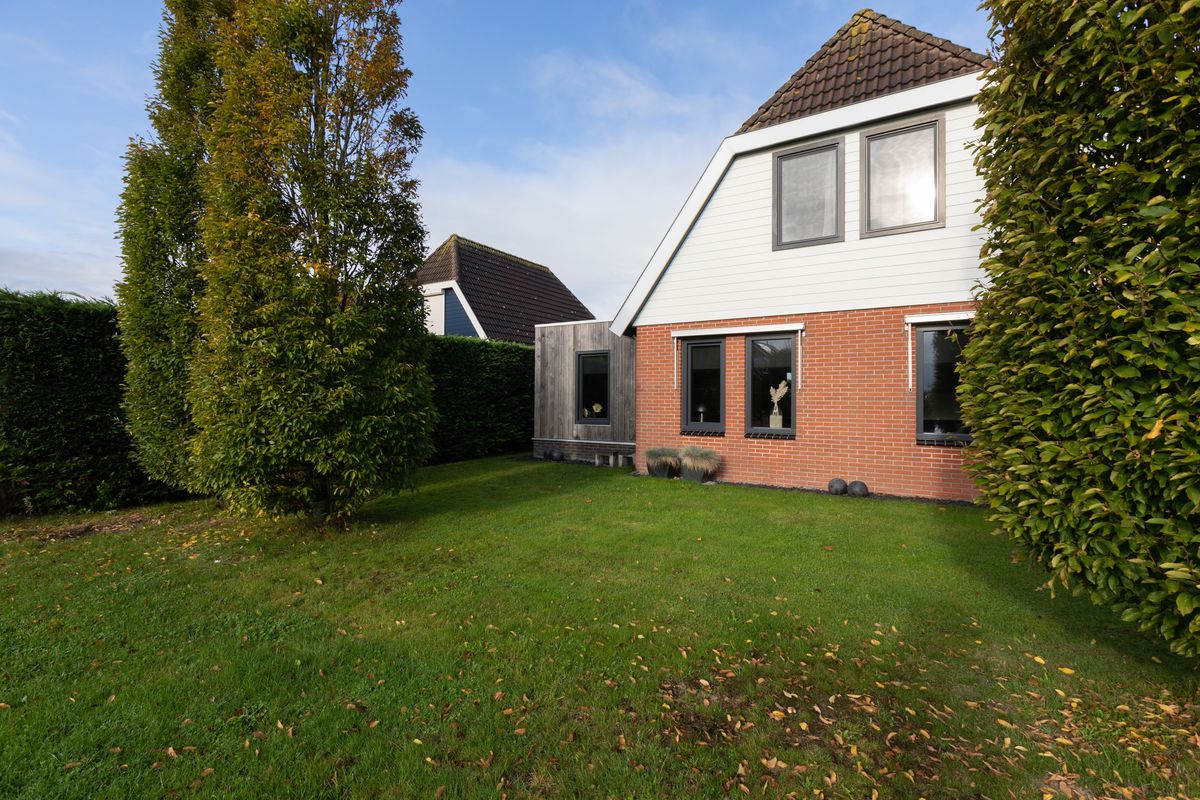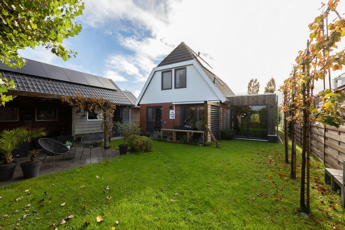 De royale achtertuin is op het zuidwesten gelegen en aangelegd met diverse terrassen, beplanting, gazon en een terras met overkapping. Door de ruime afmetingen van de tuin is er altijd een schaduw of zonneplek aanwezig.