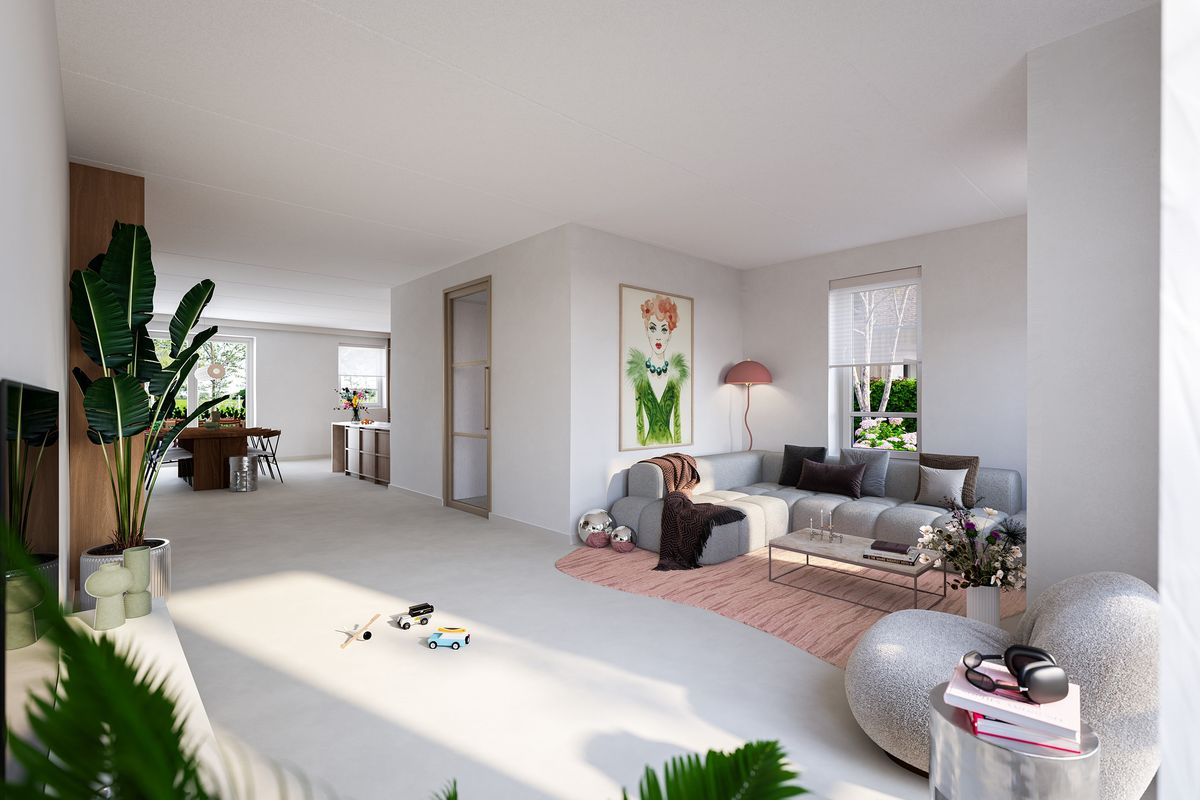 De woning heeft een ruime, u vormige woonkamer met open keuken, openslaande deuren naar de tuin en een berging van 5 meter lang. In de berging vind je de aardwarmtepomp, waarmee de woning duurzaam en energiezuinig wordt verwarmd.