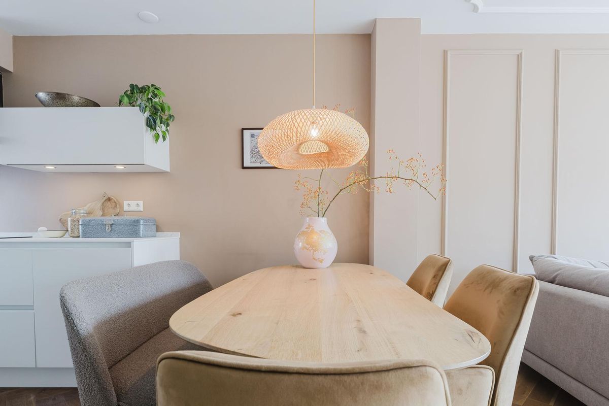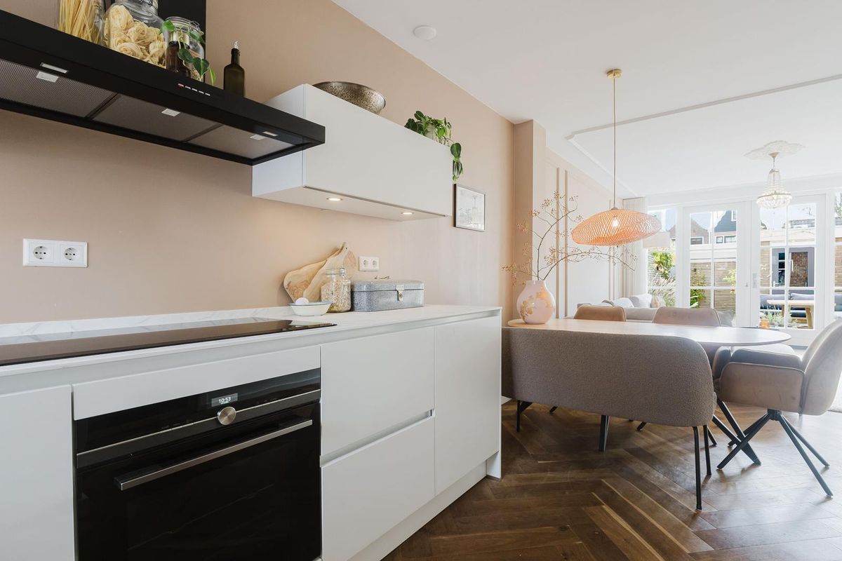 De open keuken (vernieuwd in 2021) is een echte eyecatcher: strak wit met een warme accentmuur, uitgerust met o.a. een Quooker, inductiekookplaat, vaatwasser, koel-vriescombinatie, afzuigkap en oven. Alles wat je nodig hebt om met plezier te koken!