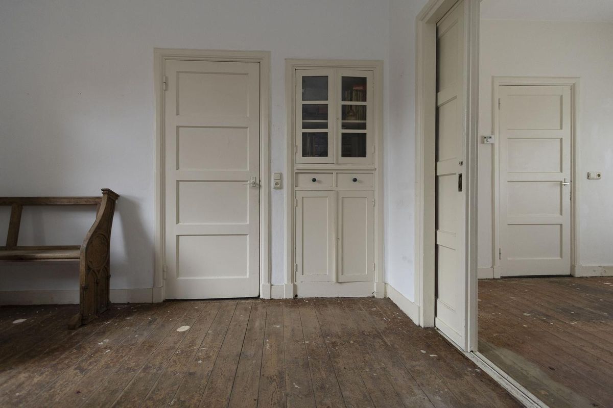 Bij binnenkomst valt direct het glas-in-loodraam bij de entree op, een sfeervol detail dat herinnert aan het bouwjaar van de woning. De hal biedt toegang tot de woonkamer en suite, waar de originele indeling nog intact is. De voorkamer kijkt uit over de straat, terwijl de achterkamer zicht biedt op de diepe tuin. De ruimtes zijn licht en ruim, met volop mogelijkheden om te moderniseren en te herindelen.