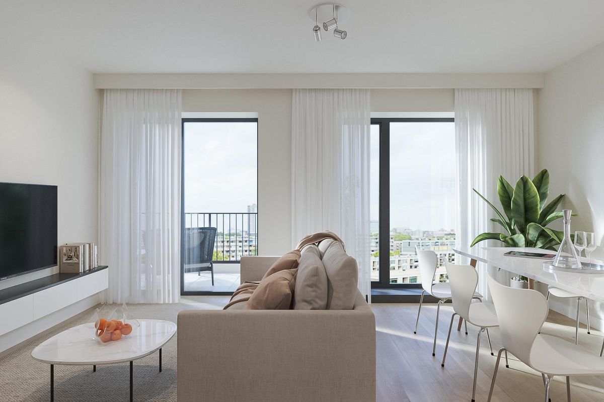 Dit appartement is volgens de laatste standaarden gebouwd wat resulteert in een energielabel A+++. Lekker lage energielasten zijn een groot pluspunt van dit appartement. Doordat het op de elfde verdieping gelegen is, heb je ook nog eens een bijzonder fraai uitzicht richting het zuiden. Door het open karakter van de wijk, met veel groen en veel laagbouw, kijk je lekker ver weg. Even buiten zitten? Jouw balkon is gelegen op het zuiden en staat dus garant voor de meeste zonuren per dag. En wil je even wat groener? Of meer mensen om je heen? Dan is het heerlijk toeven in de gezamenlijke daktuin; een ware eyecatcher van dit project.