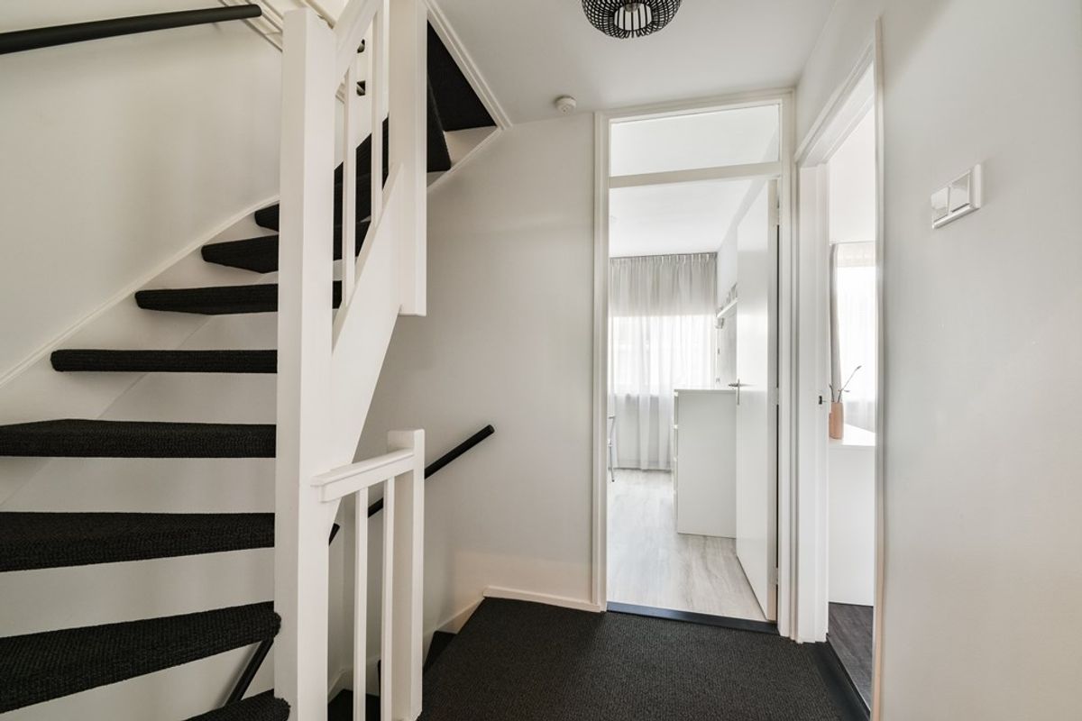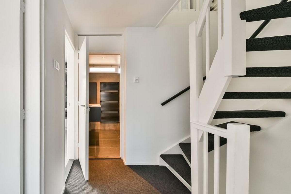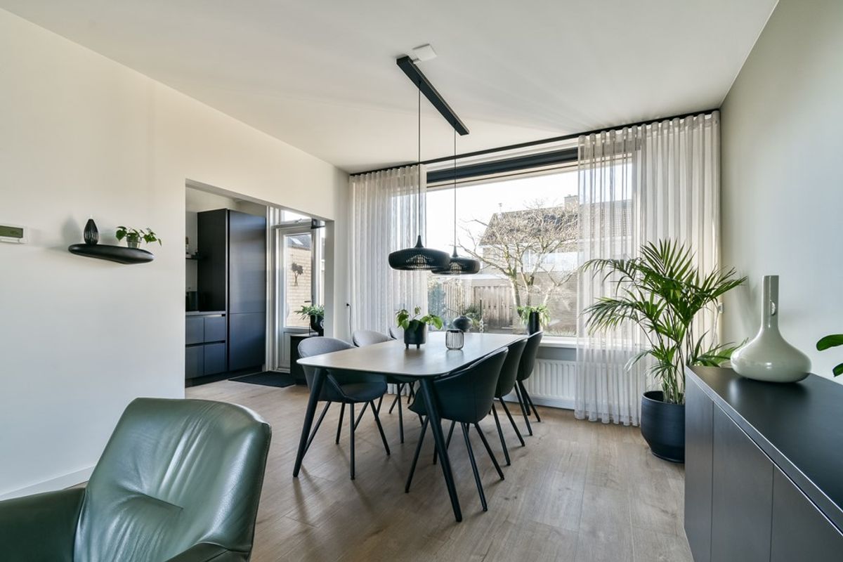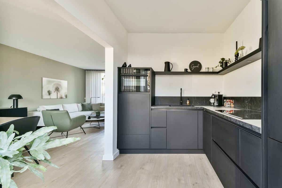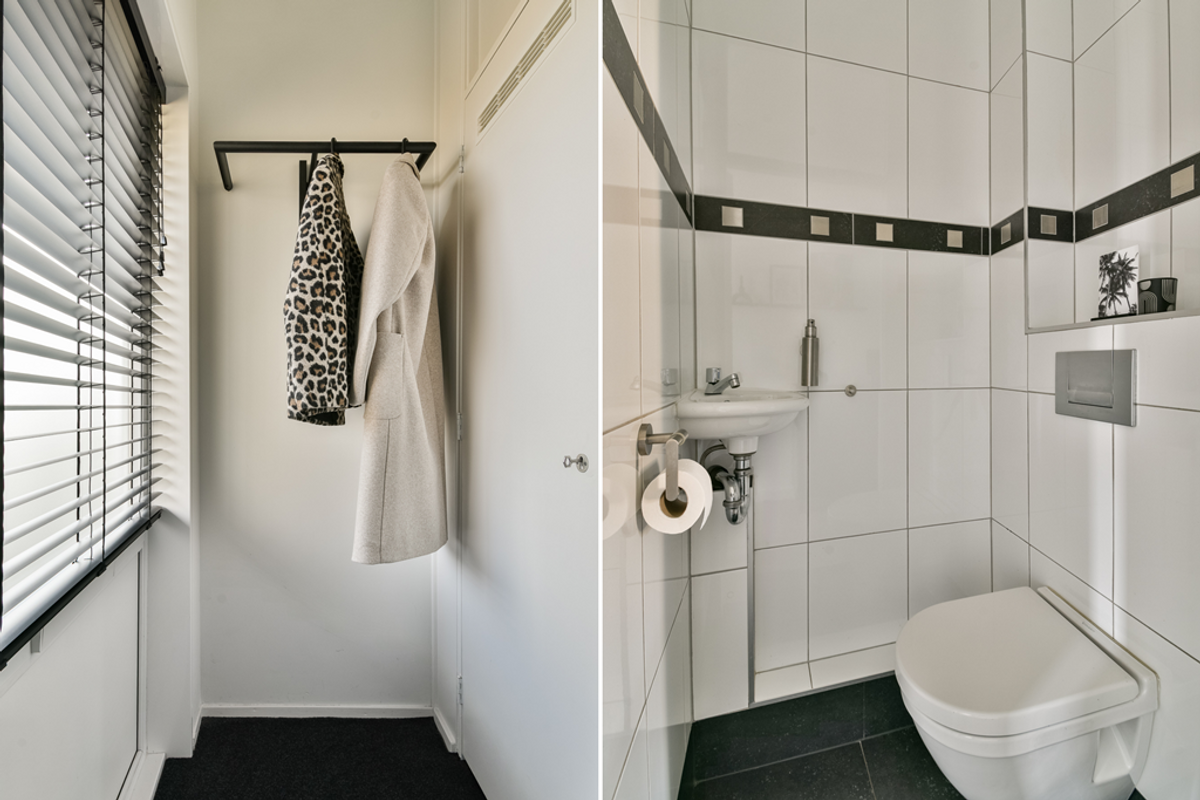 Middels de overdekte entree toegang in de hal met de garderoberuimte, de meterkast, de nette en volledige betegelde toiletruimte v.v. een zwevend toilet + een fonteintje en de trapopgang met trapkast. Via een mooie paneeldeur toegang tot de riante doorzonwoonkamer. Grote raampartijen aan zowel de voor- en achterzijde zorgen voor veel natuurlijk licht, terwijl de strak afgewerkte (PVC) vloer, wanden en plafond bijdragen aan de frisse uitstraling. Beide raampartijen zijn voorzien van elektrische screens voor zonwering en privacy. De halfopen keuken in L-opstelling is drie jaar geleden geplaatst en voorzien van moderne apparatuur, waaronder een inductiekookplaat met geïntegreerde afzuiging, een koel-vriescombinatie, een combi-oven en een vaatwasser. De gestucte wanden zorgen ook hier voor een frisse uitstraling. Vanuit de keuken toegang tot de achtertuin.