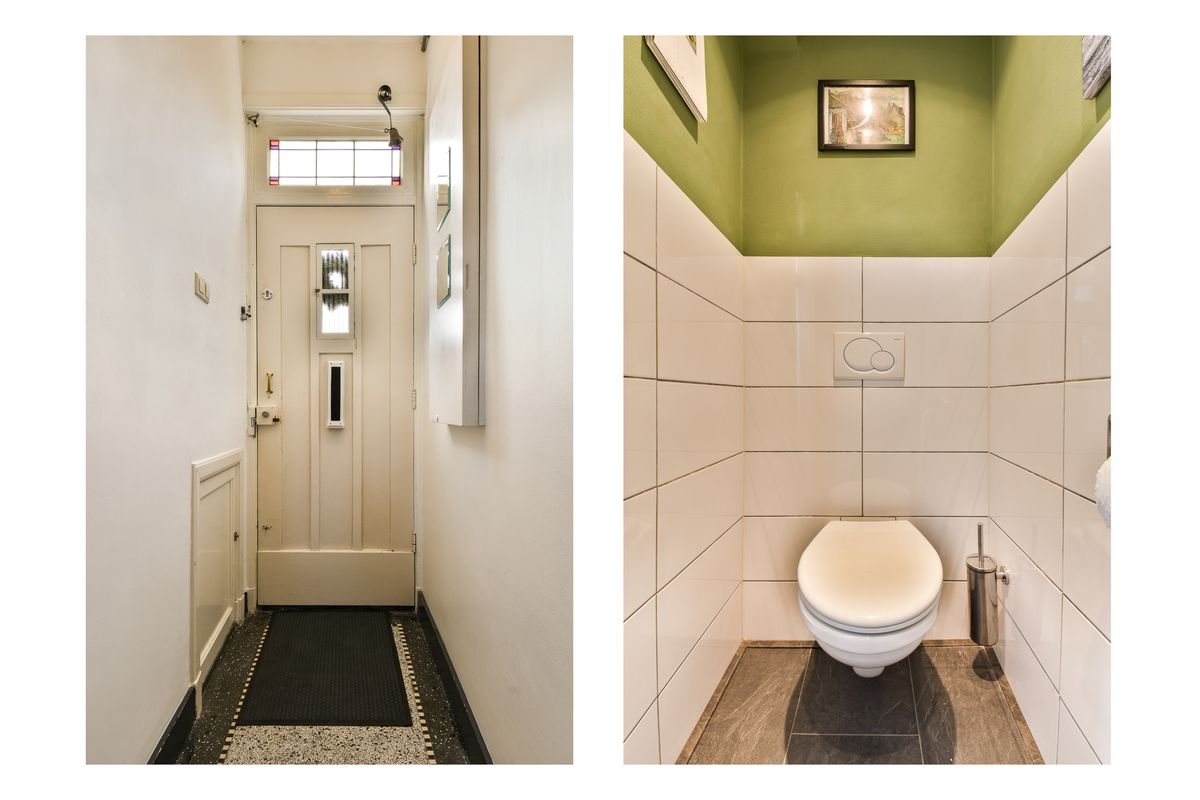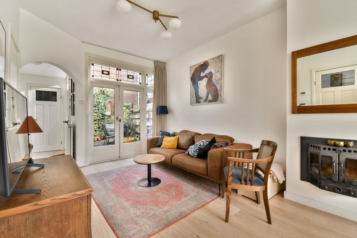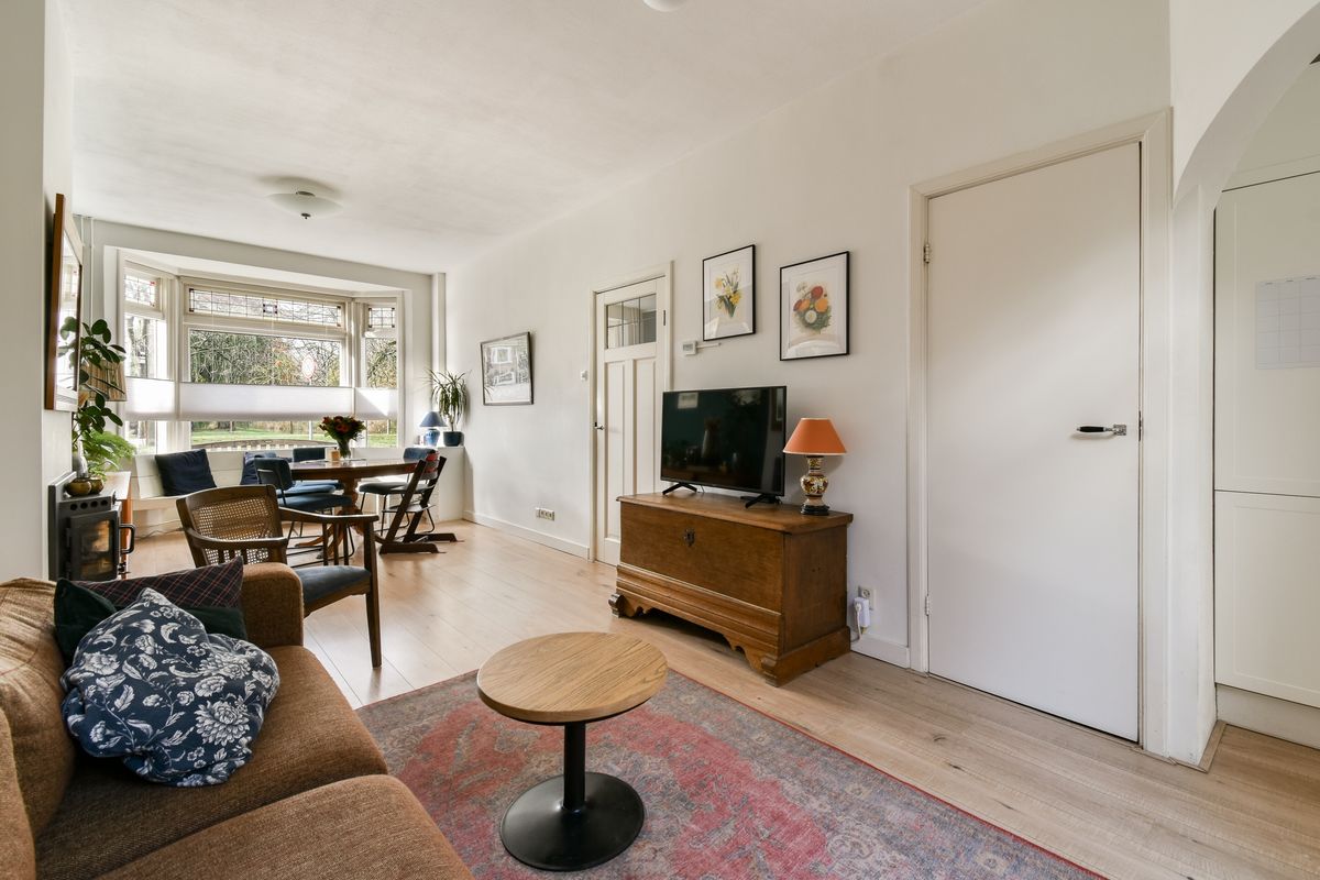 Bij binnenkomst voel je het meteen: dit is geen standaard woning. De prachtige granito vloer in de hal, de klassieke trapopgang en de originele details verwijzen naar de rijke jaren ’30-architectuur. Vanuit de hal bereik je de woonkamer, waar sfeer en comfort hand in hand gaan.