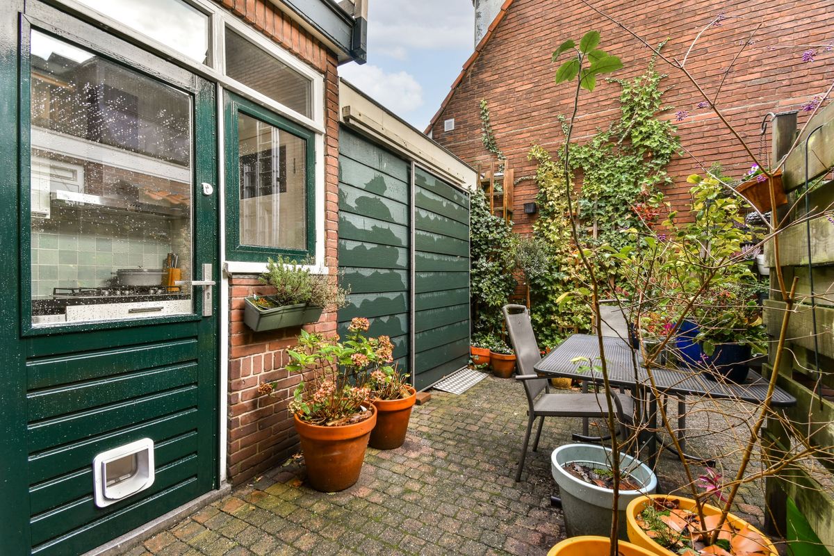 De achtertuin ligt op het oosten, waardoor je hier heerlijk kunt genieten van de ochtendzon en vroege middagzon. De tuin is ingericht met een stenen berging, een achterom en een recht van overpad naar de achterpoort. Het is een fijne, onderhoudsvriendelijke buitenruimte die geschikt is voor ontbijten in de zon, spelen met de kinderen of ontspannen na een drukke dag.