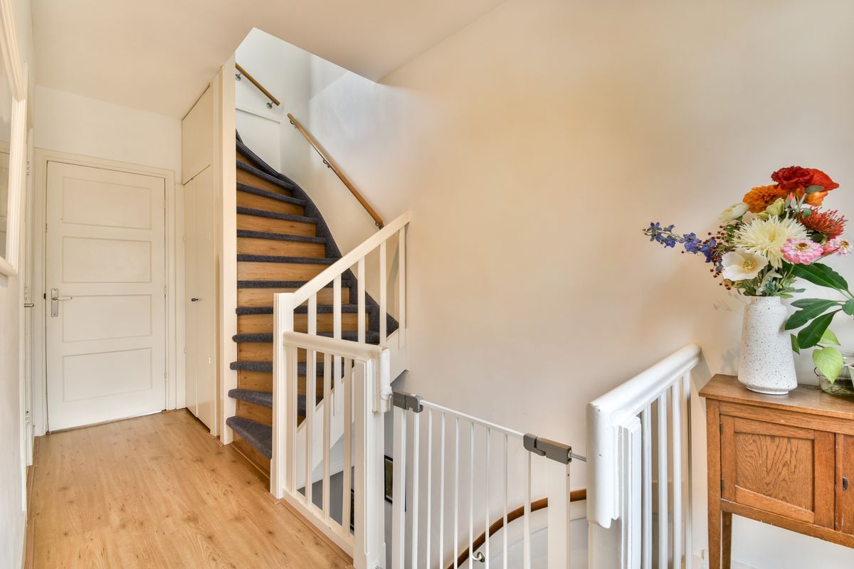 In de trapkast op de overloop is plaats voor de wasmachine en droger — praktisch en uit het zicht.