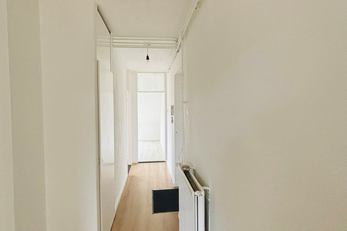 Bij binnenkomst via de portiek met bellenplateau bereik je de woning op de tweede verdieping. De gehele woning is voorzien van een nette laminaatvloer. Aan de achterzijde bevinden zich twee ruime slaapkamers, ideaal als rustige slaap- of werkruimtes. De royale woonkamer aan de voorzijde is licht en ruim dankzij de scheidingsmuur met de keuken en biedt toegang tot een zonnig balkon op het zuidwesten, waar je heerlijk kunt genieten van de middag- en avondzon. Aan de voorzijde vind je ook de derde slaapkamer, die eveneens toegang biedt tot het balkon.