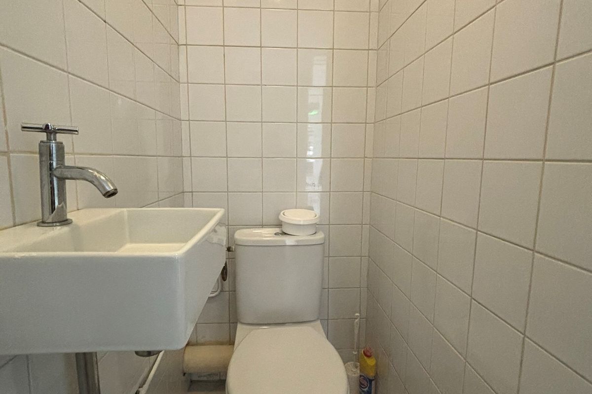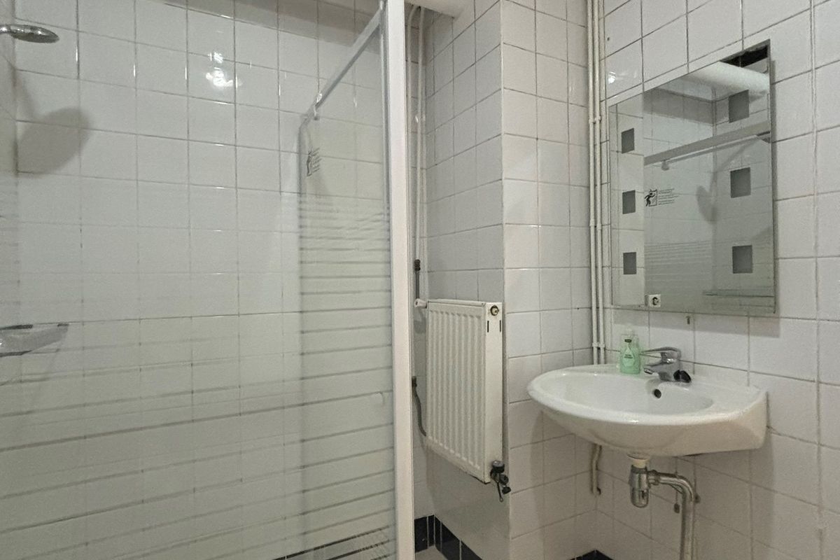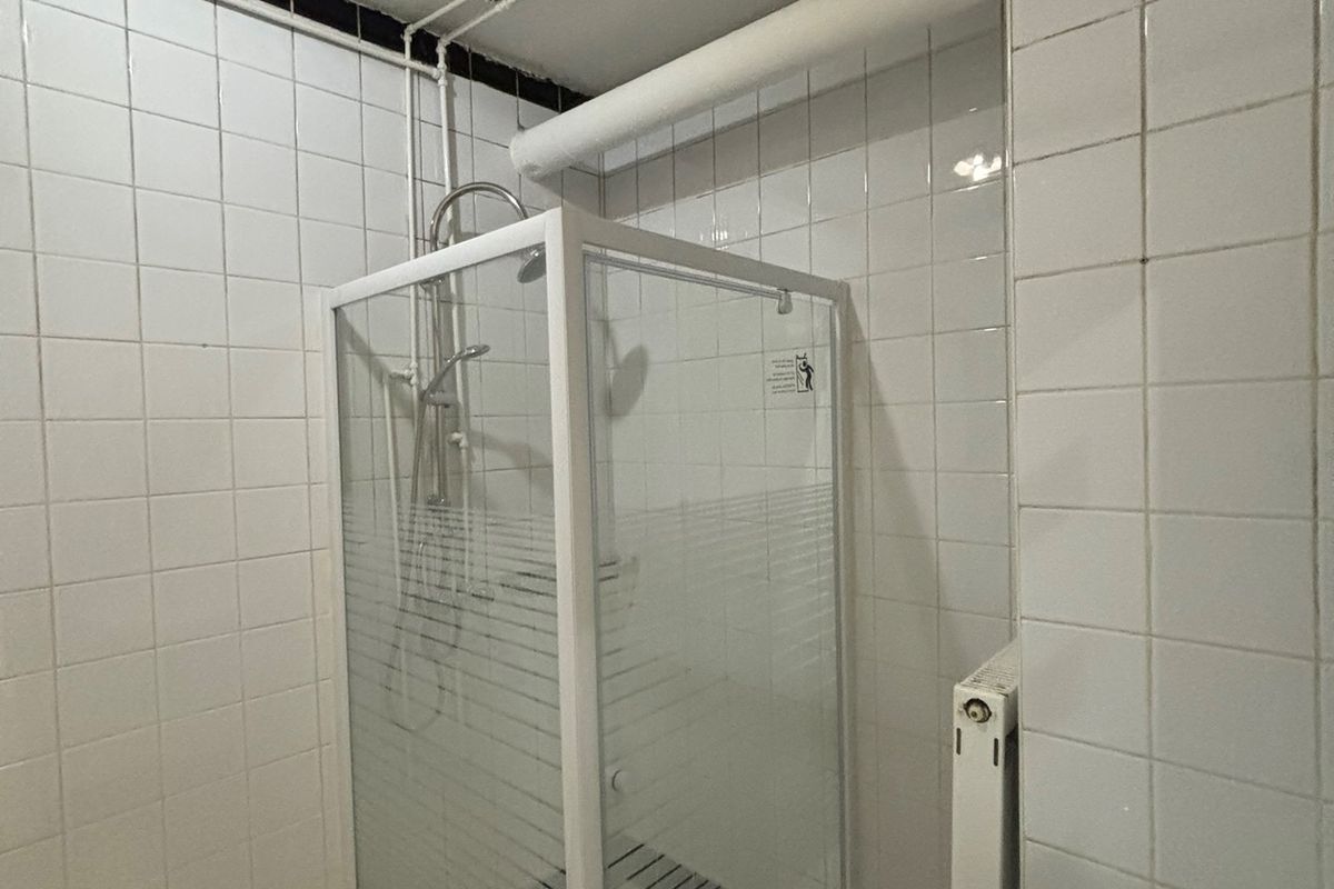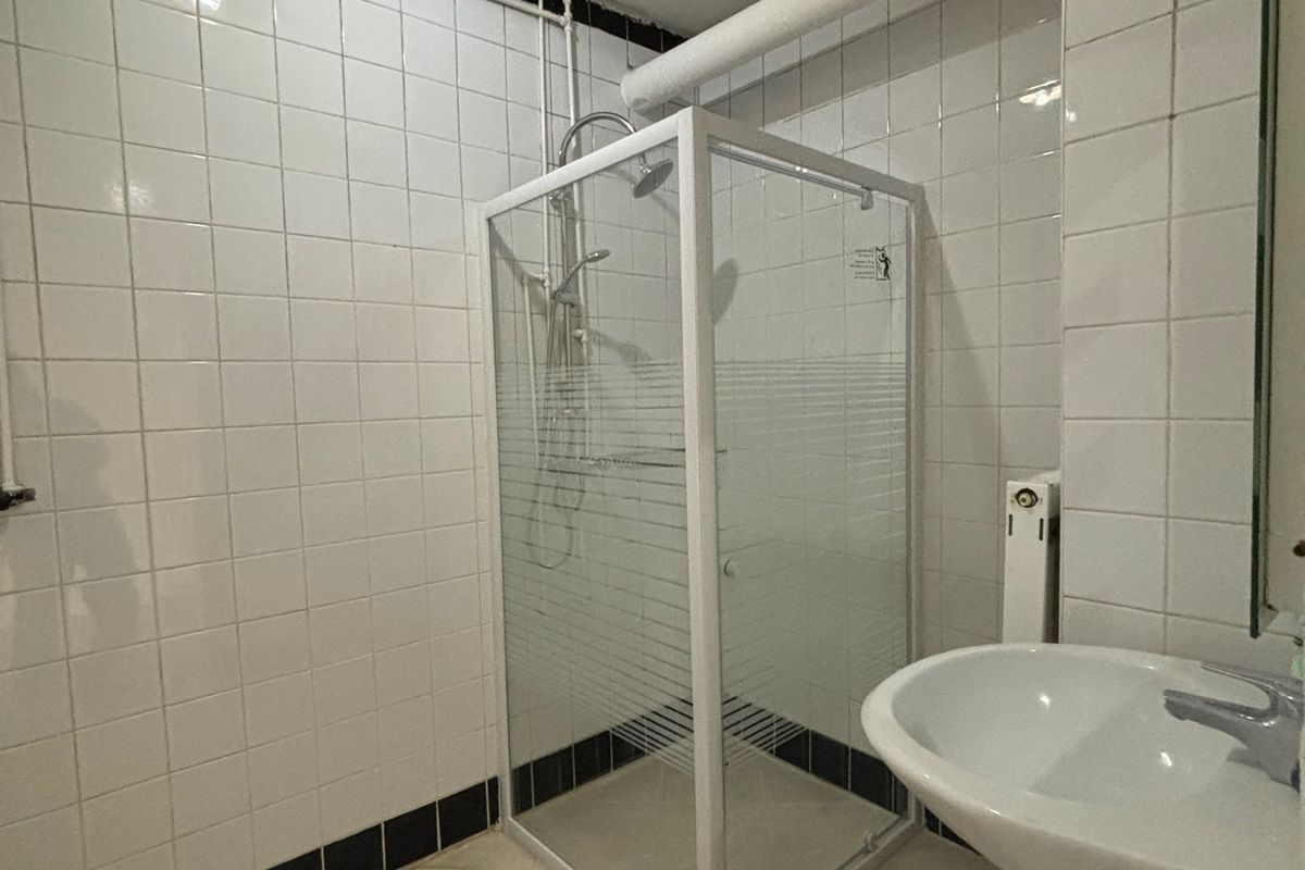 De badkamer is netjes betegeld en voorzien van een douchecabine, wastafel en aansluiting voor de wasmachine. Daarnaast is er een separaat toilet met een wasbak.