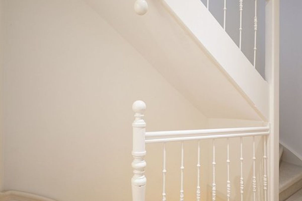 Via de gezamenlijke entree op straatniveau bereik je met de trap de eerste verdieping, waar zich de entree van het appartement bevindt. Hier is ruimte voor de garderobe en de trap naar de tweede verdieping.