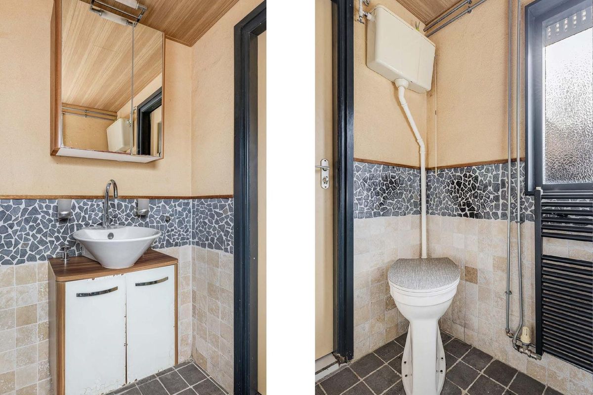 Vanuit de tussenhal heeft u toegang tot de badkamer (ca. 4 m²), voorzien van een douchecabine, duoblok toilet, wastafelmeubel met spiegelkast en aansluiting voor de wasmachine. In de tussenhal bevindt zich ook de kast met de CV-opstelling.